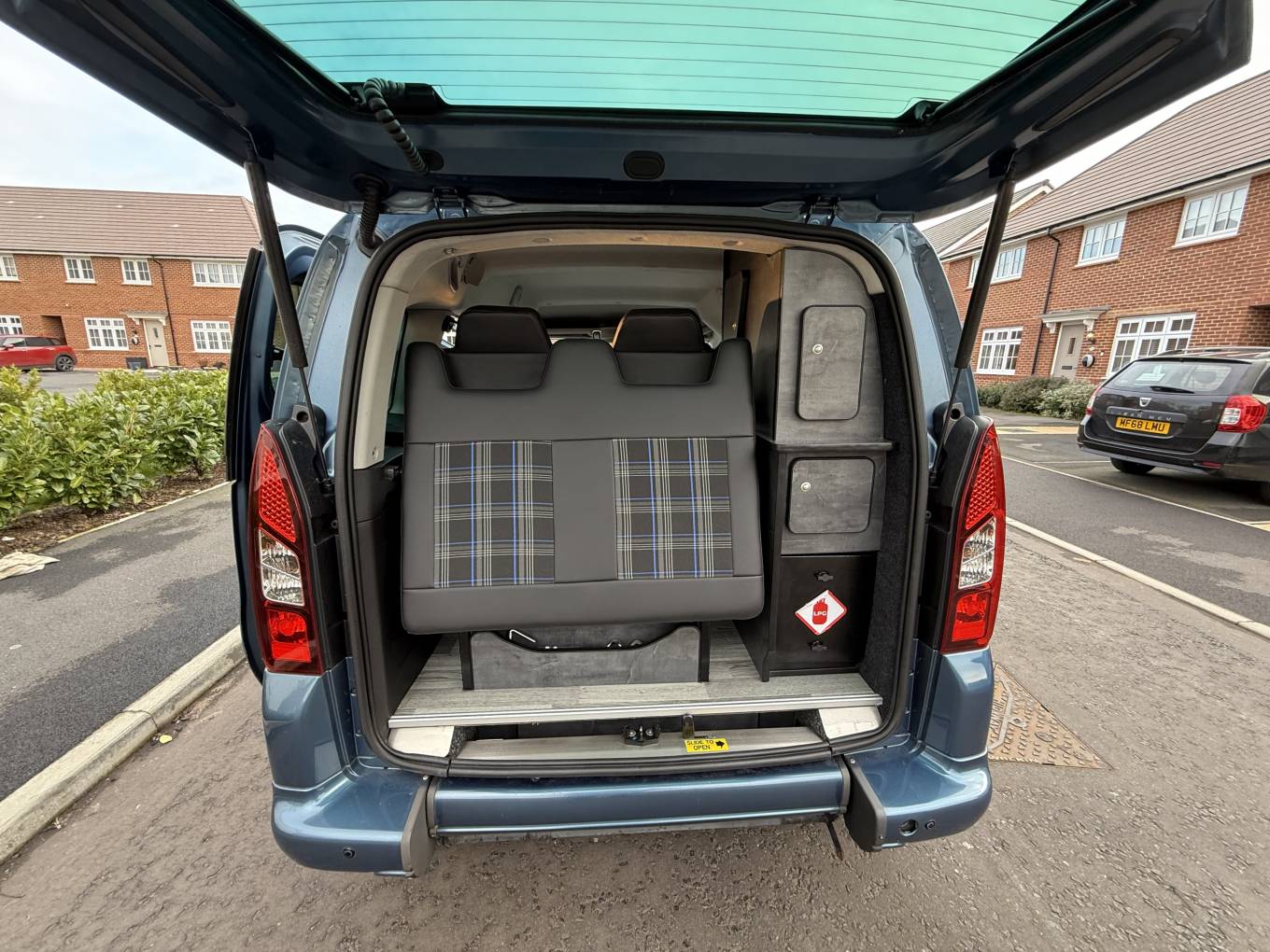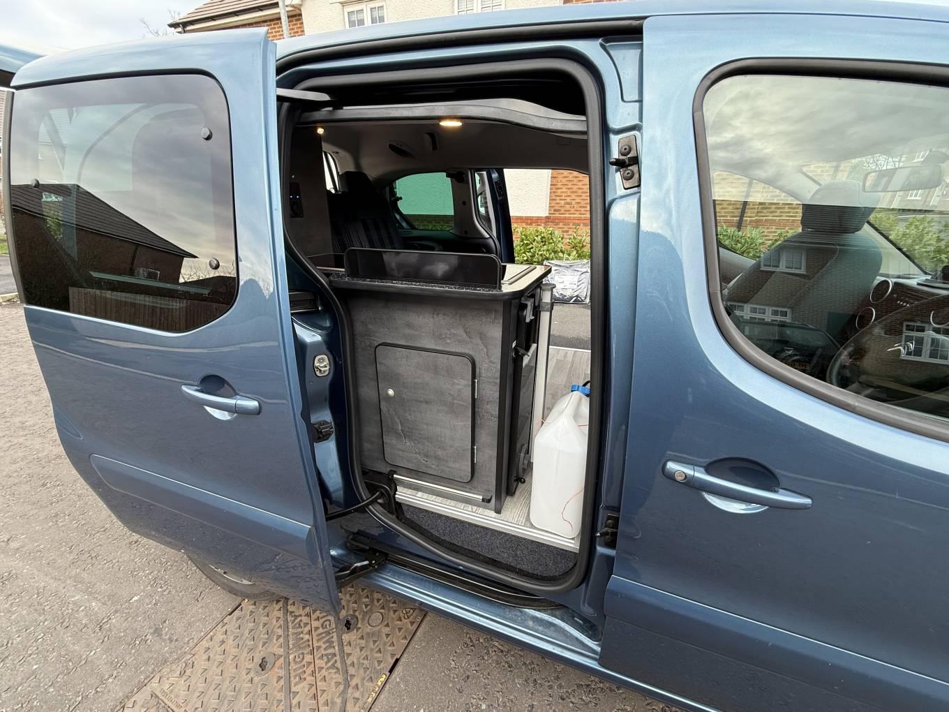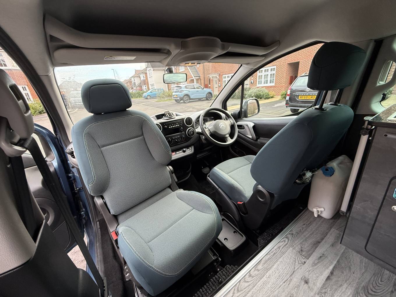 Citroen Berlingo Multispace, 2 Berth Campervan Professional Conversion by SJ Cars. This van is a beautiful example with 1 previous owner, full history and low mileage. In the rear it has a Rock and Roll Bed with 2 seat belts, the kitchen has a 2 burner hob, sink and small 12v fridge. The front passenger seat swivels to give extra seating and there is a good storage area under the rear seats. It comes with a Drive Away Awning which gives a lot of extra living space. It also comes with Cab Air Con, Cruise Control, DAB Radio, Mains Hook Up, Rear Sensors, 2 Sets of Keys and Gas Bottle. Available for viewing by appointment in Leyland, call for mor Photos, Videos and information.