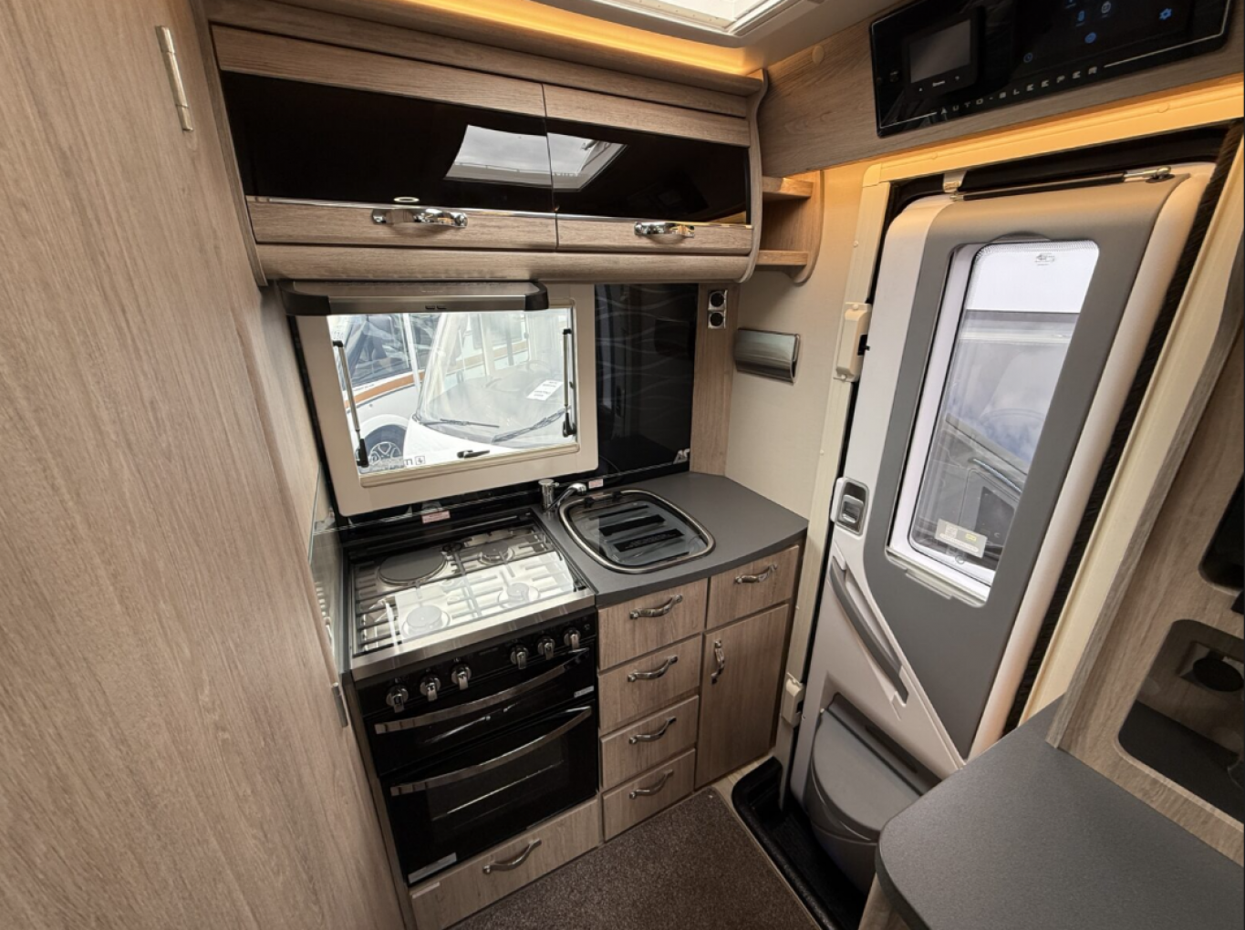 Safety and convenience are prioritised, with twin airbags, ESP with traction control, tyre pressure sensors, UV tinted glass, and electrically heated mirrors. External features include a BBQ point, external TV and mains socket, and underfloor skirt locker for added practicality.