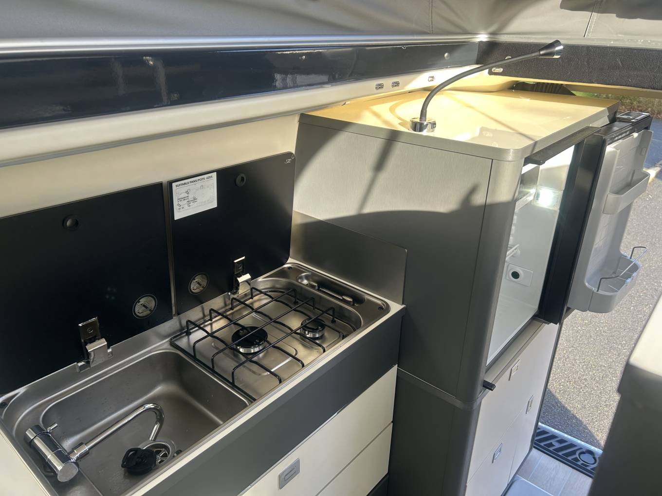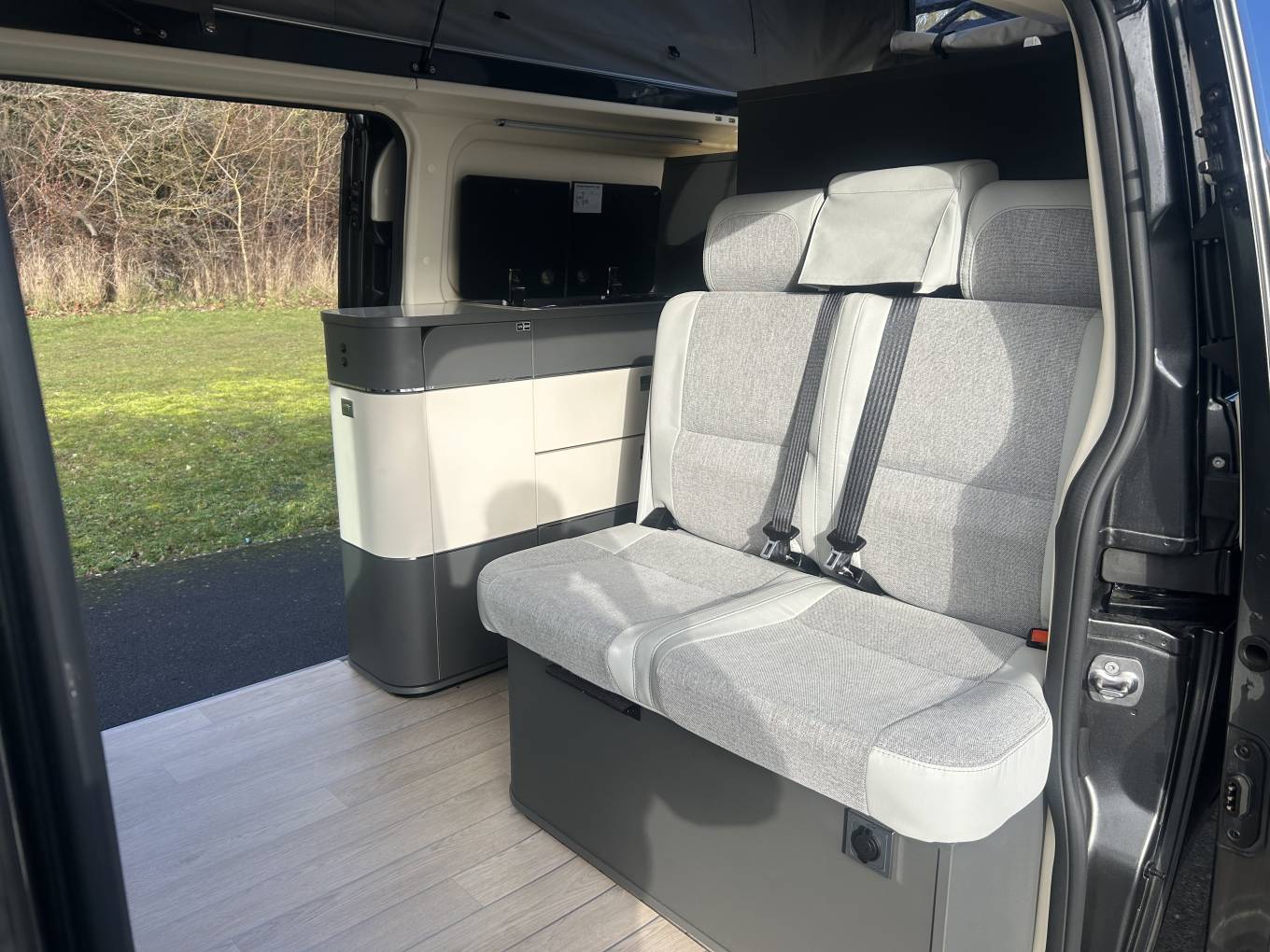 The internal layout is brilliant and gives you a really spacious feel for a camper of this length. At the front the two front seats rotate around and a front facing double to give you a lovely seating area. There is a cleverly stored table that can be set up in the middle and also has a couple of other free standing units. Moving back, you have an extremely well equipped kitchen area with gas hob with two burners, sink with hot and cold water, 50l fridge and plenty of storage space. This Westfalia Kelsey is extremely comfortable to sleep in and you have the option of the upper area in the pop top roof as we as a double or single below. The upper bed has the Froli Mattress and Froli bed springs for extra comfort and the lower area also converts into a double or single bed. One of the standout features of the Kelsey is that is comes with a flush toilet and even has an internal shower - will shower tray. Heating is provided by a Webasto Diesel Heater and Hot water via the Truma bolier. Externally this motorhome has a wind out awning and bike rack. It even comes with two leisure batteries - making it idea for off-grid use. This Westfalia Kelsey is available to view by appointment only, further details including extra photos and an external and internal video of this motorhome please contact Michael. I would be very happy to help with any questions and can also offer a pick up and return service from local train, bus or even airport, should you wish to come and view.