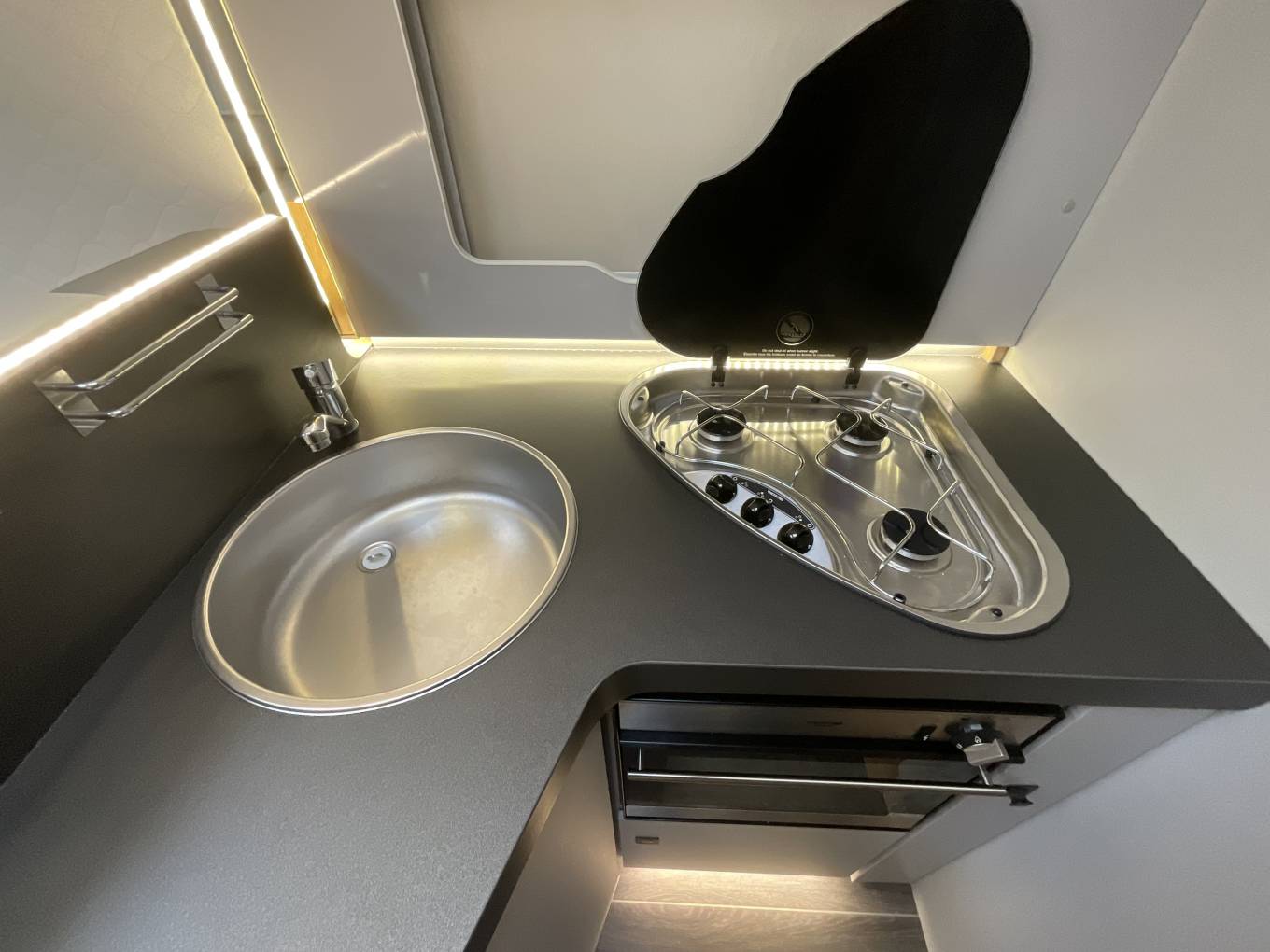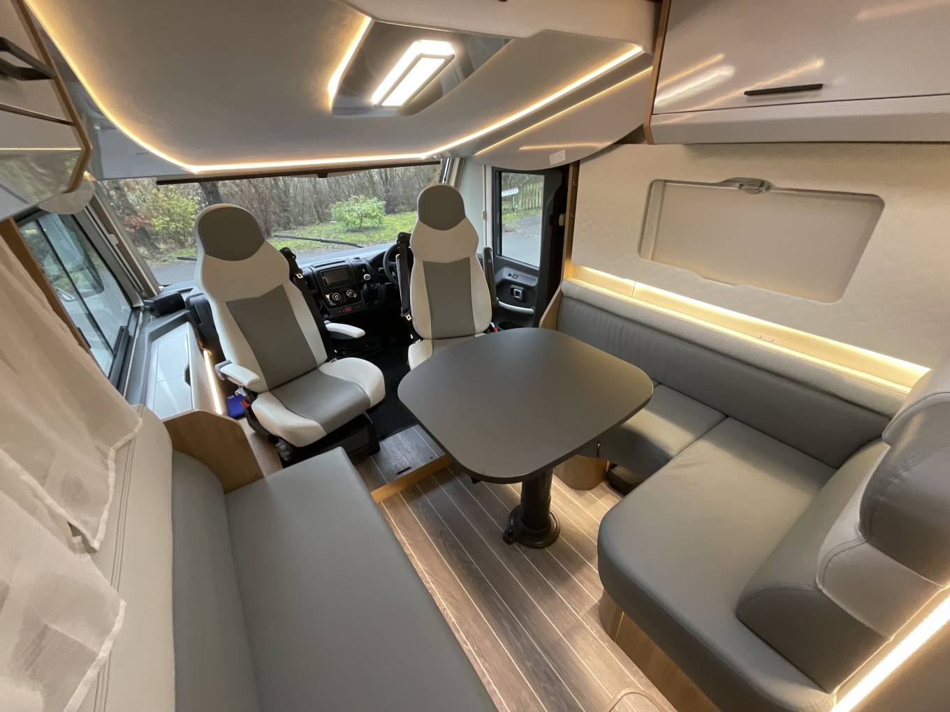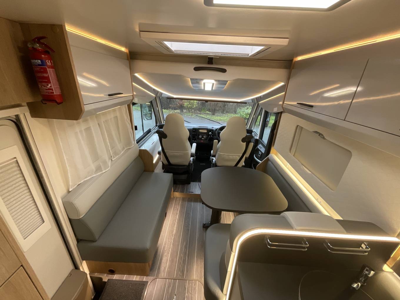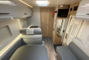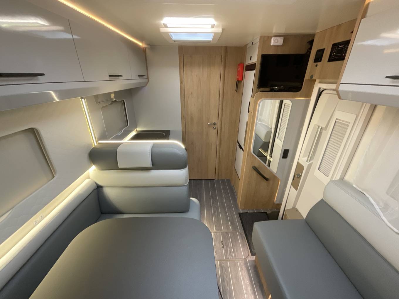 Inside, the Pegaso 590 welcomes you with a bright and contemporary interior, featuring a spacious lounge and dinette area that provides the perfect space to relax, dine, or entertain. The well-appointed kitchen is thoughtfully laid out with ample storage and workspace, allowing you to prepare meals with ease while on the road. The comfortable sleeping arrangements ensure a restful night’s sleep, and the washroom facilities offer all the convenience you’d expect from a modern motorhome.