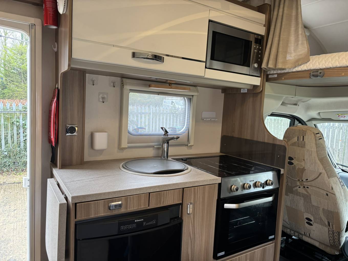 Cab Air Conditioning, Reversing Camera, Solar Panel, Wind-out Awning, Swivel Cab Seats, Truma Heating & Hot Water System, DAB Radio, LED Lighting throughout, Thetford 3-way fridge/freezer, Oven & Grill, Microwave, TV mount, TV aerial, Thetford cassette toilet, Separate shower cubicle, Vanity unit, Blinds and Flyscreens, Large wardrobe storage, External gas BBQ point, External 230v hook-up, Whale water system