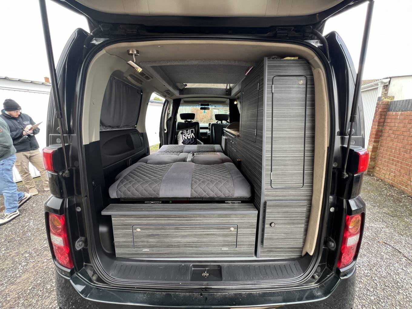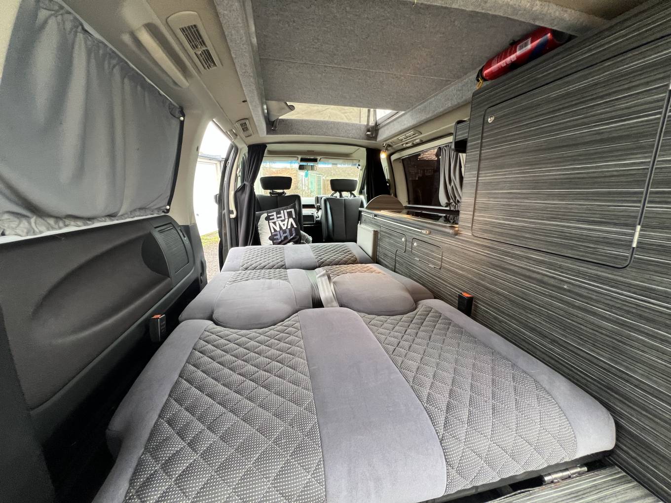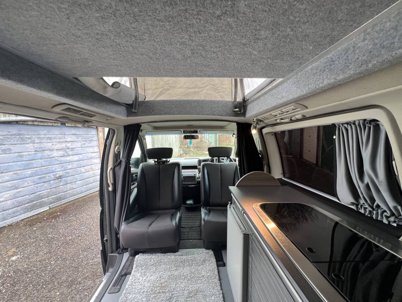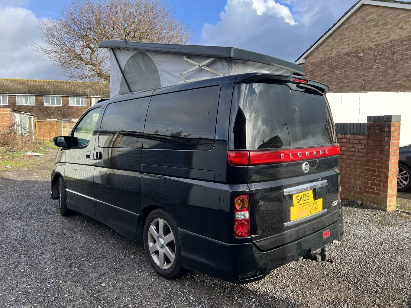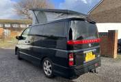 Motorhome Depot Southampton are pleased to present this Nissan Elgrand campervan, first imported to the UK in 2018. Finished in a factory pearlescent pearl black paintwork that displays green and purple hues in sunlight, this camper offers a 4 berth / 4 belt layout powered by a 2.5L petrol engine with semi-automatic transmission. The vehicle shows 92,956 kilometres.
