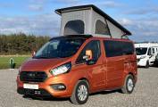 Built in 2021 by Auto-Campers, this ex-hire Ford Transit Custom L1H1 with 130ps TDci engine is based on the limited specification so includes colour coded handles, bumpers & trims, 16-inch alloy wheels, automatic headlights and windscreen wipers, air conditioning, heated windscreen, heated front seats, electric windows, cruise control, folding heated door mirrors, front fog lights, front and rear parking sensors, reversing camera, Ford Sync 3 DAB stereo with 8-inch touch screen and factory fitted alarm.