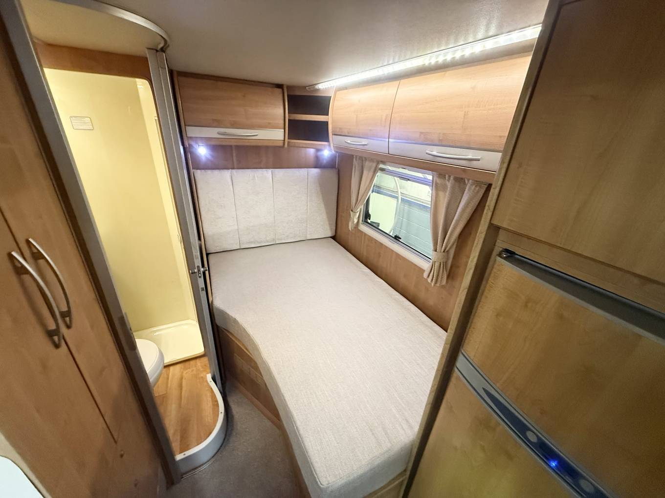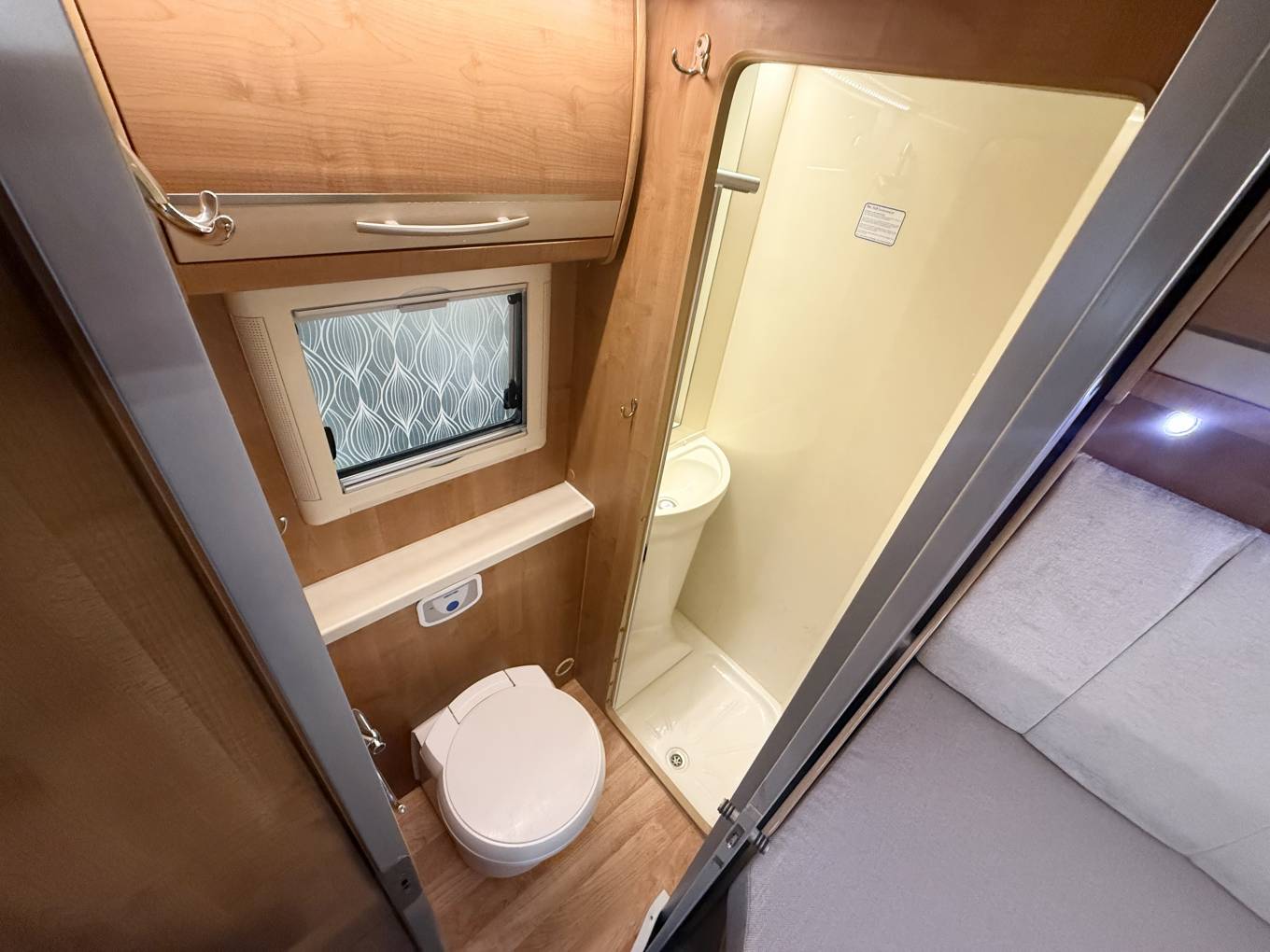 At the rear is the fixed corner bed and washroom with wc, sink and shower next door.