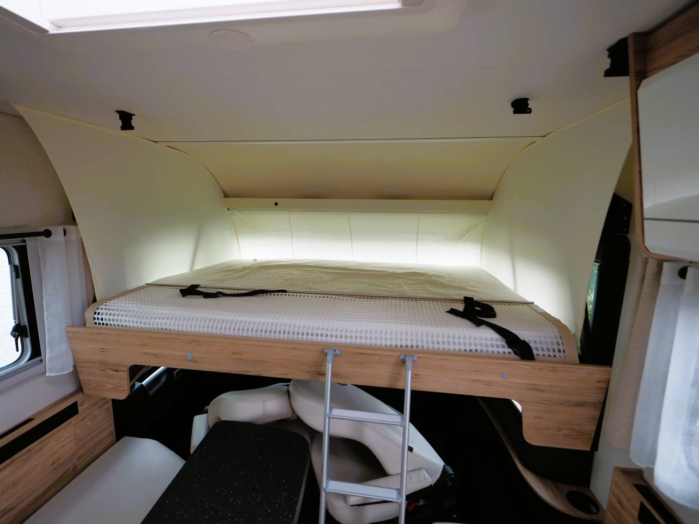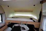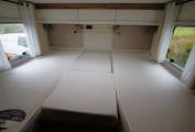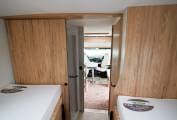 The rear beds can be used as two comfortable singles or as a large king-size bed with the drop in mattress piece. Large storage with hanging rails feature to each side with additional storage in the overhead lockers. A privacy door separates the bedroom from the main habitation area and the central split washroom provides ensuite facilities that include a flushing cassette toilet, washbasin with mixer tap, vanity mirror, storage and separate shower cubicle. The Kitchen includes a 2 burner gas hob, combi oven and grill, sink with mixer tap and a large fridge with separate freezer. Up front there is a comfortable lounge/dinette providing a great place to dine and entertain. A large drop-down double bed provides further sleeping accommodation.