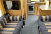 With this motorhome you get a everything you would want for holidays, breaks and trips away in less than 6m in length and weighing in at 3300 kg so can be driven on a standard driving licence. Inside it offers a spacious lounge that converts easily into sleeping space, The kitchen is well equipped for touring, with plenty of storage, gas/electric hob, oven and 3 way fridge, making it easy to enjoy meals on the road. The washroom includes a toilet, sink and shower, giving you everything you need for self-contained trips and with a Truma hot water / heating system along with the Truma Heatstore to keep it warm and cosy. With plenty of storage and overhead cupboards, captains seats at the front along with the fold out table this Motorhome offers everything you would need.