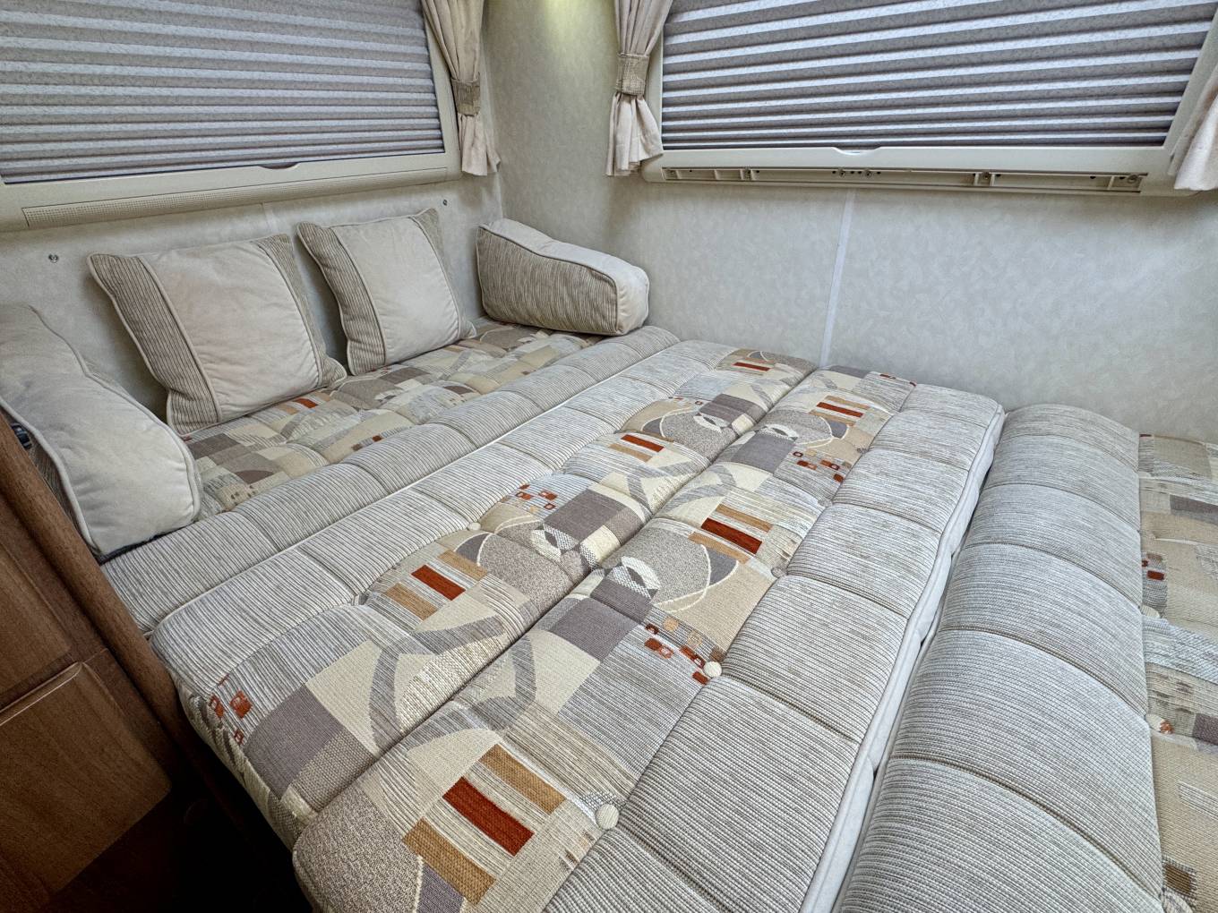At the rear you will find a bright and airy end lounge with opposing bench seats creating a relaxing space for daytime use. The lounge easily converts into a double bed. Windows and roof lighting flood the area with natural light giving a real sense of space.