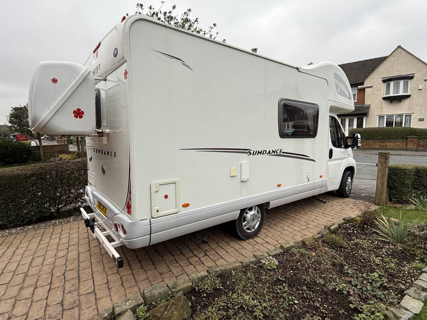 Swift Sundance 590RS, 5 Berth Motorhome with End Kitchen and Over Cab Bed. This is motorhome is in lovely condition and is well maintained with current Habitation Check, recent service and just 36,136 miles on the clock. At the rear is the kitchen and next to this is the bathroom. In the centre is the lounge area with large bench seat and dinette and at the front there is a large over cab bed. It comes with 4 Seat Belts, Alarm, Immobiliser, CD Radio, Blown Air Heating, TV Aerial, Canopy Awing, Tow Bar, Back Box and Solar Panel. It also comes with Gas Bottle and Mains Lead. A great compact starter van, available for viewing by appointment in Preston, call for more photos, videos and information.