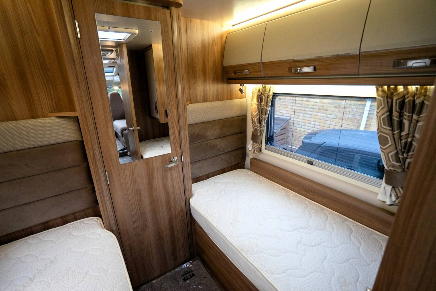 Experience the perfect blend of style, comfort, and practicality with this stunning 2018 Swift Bessacarr 574. Renowned for its high specification and striking looks, this motorhome offers a premium touring experience. Featuring the desirable twin fixed single bed layout and a spacious rear washroom, it is the ideal sanctuary for couples looking to explore in total luxury.