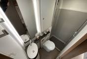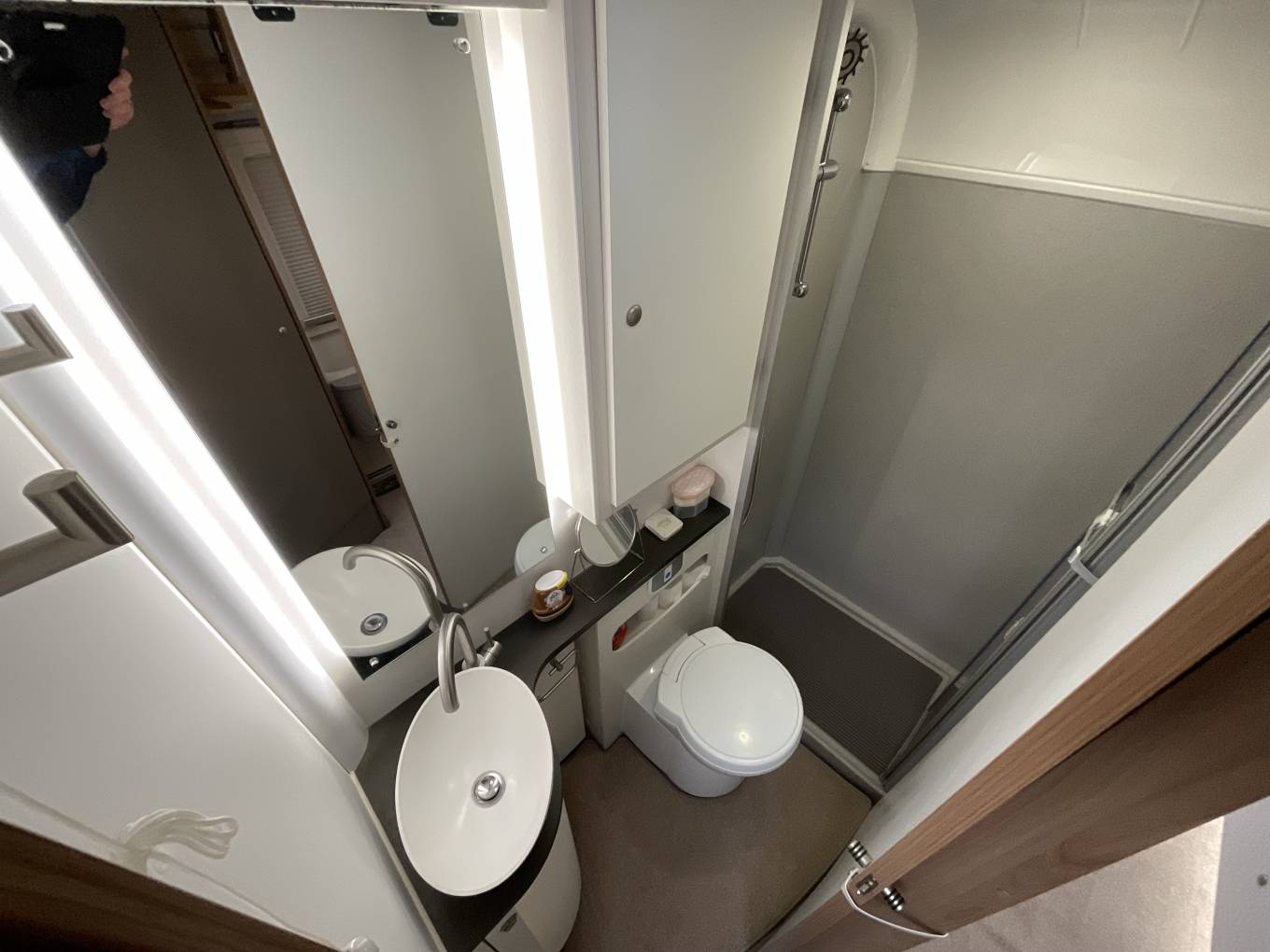 The cleverly designed washroom offers a separate shower cubicle, vanity wash basin, plenty of storage and a cassette toilet, while ample storage throughout keeps your gear organised on the move. Practical features include Alde wet central heating for year-round touring, cab air conditioning and multi-function steering wheel, plus thoughtful extras such as a wind-out awning, reverse camera, solar panel, external gas BBQ point and fitted bike rack to enhance your outdoor living experience.
