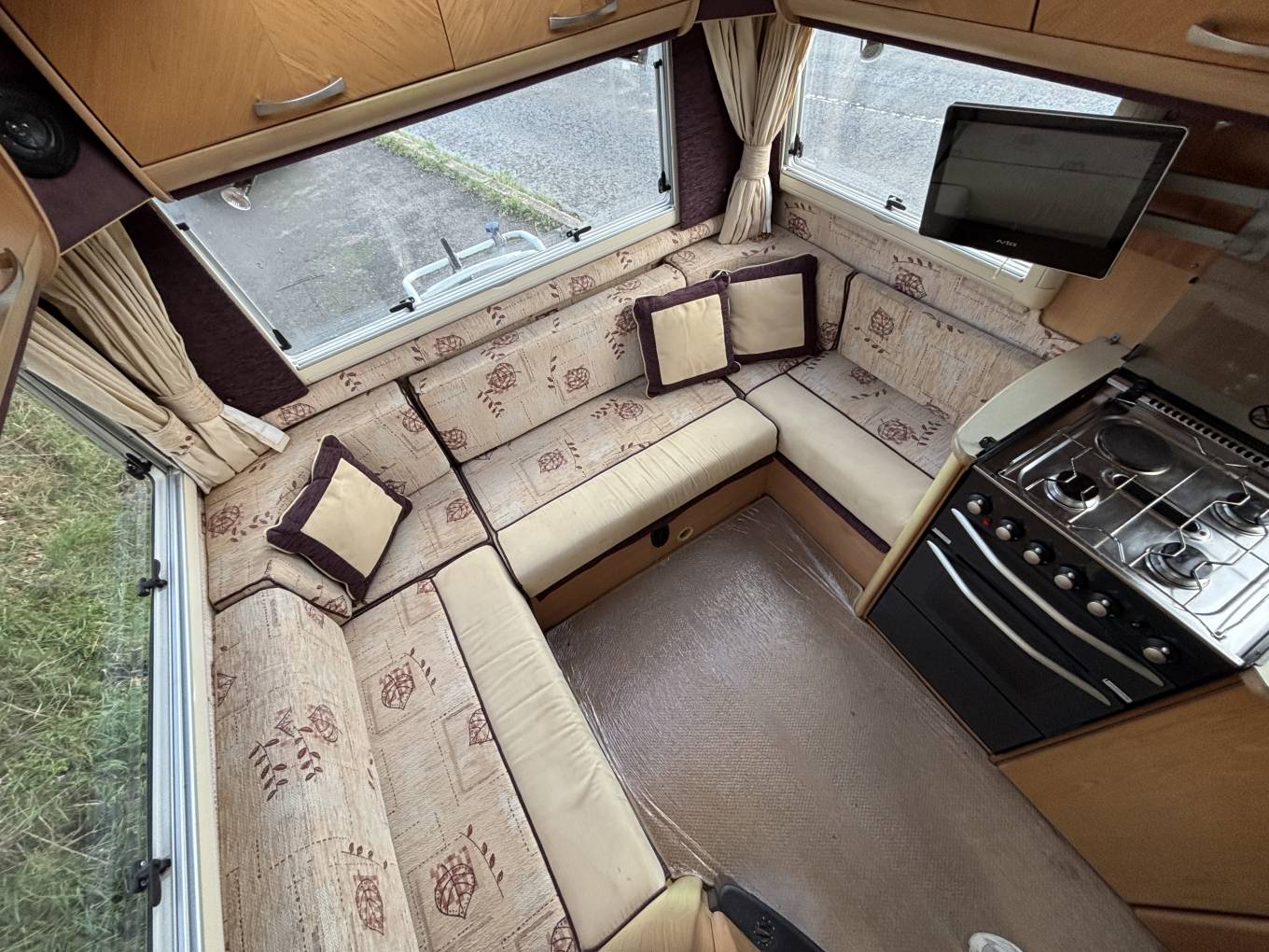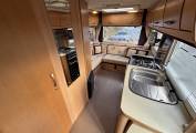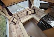 The kitchen is mid habitation and has storage space with cupboards and draws allowing you to store away all of the required pots and pans, and gives you everything you need to cook up a hearty meal for any occasion, included in the kitchen you have, 3 gas burner hob with 1 electric plate, a 3 way fridge with freezer box, washbasin, and grill/oven combi. With the kitchen being next to the Habitation door you also benefit from extra ventilation when preparing your meal of choice.