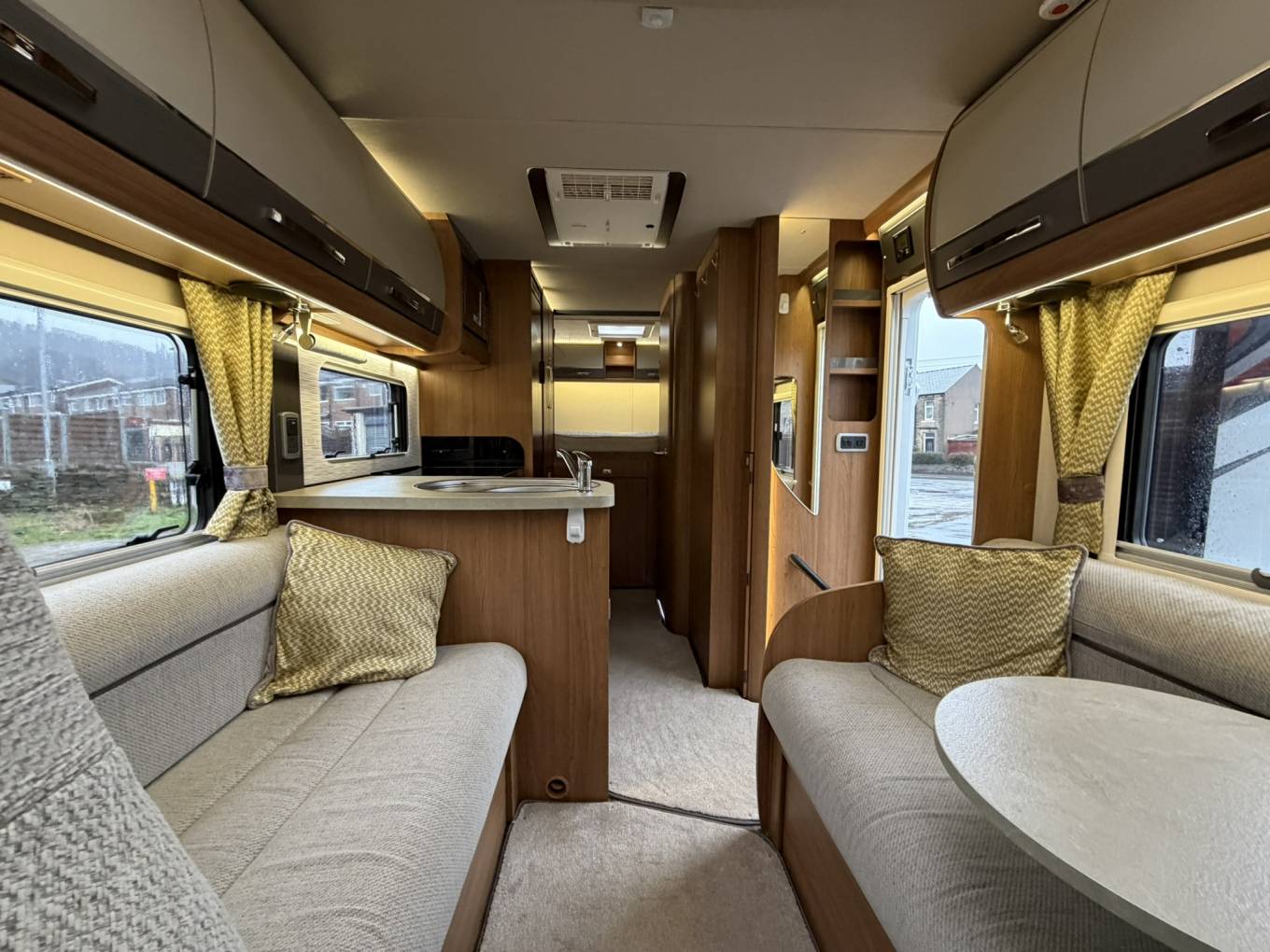 It features a new wind-out awning with end panels, Truma habitation air conditioning, Sargent EC700 power unit, and is Truma iNet ready for precise climate control. Security is exceptional with all doors alarmed from fob, Heosafe habitation & cab door locks, Scorpion alarm and tracker, and a Ghost Pro 2 immobiliser, giving complete peace of mind on and off the road.