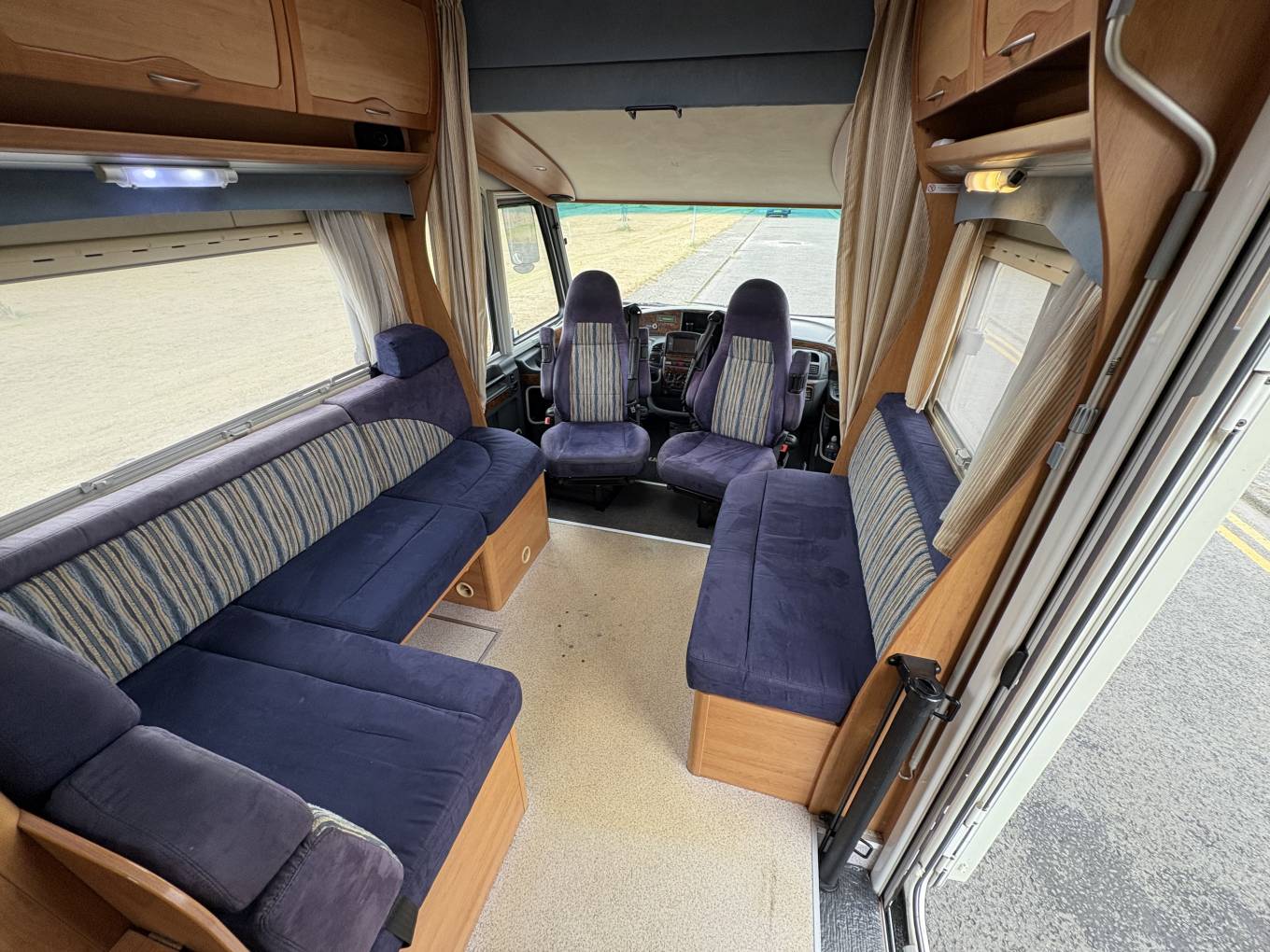 Truma gas and electric heating with additional Truma E2 cab heating, two cab doors plus habitation door, electric entrance step, electric front blind, security under-floor safe and excellent storage throughout.