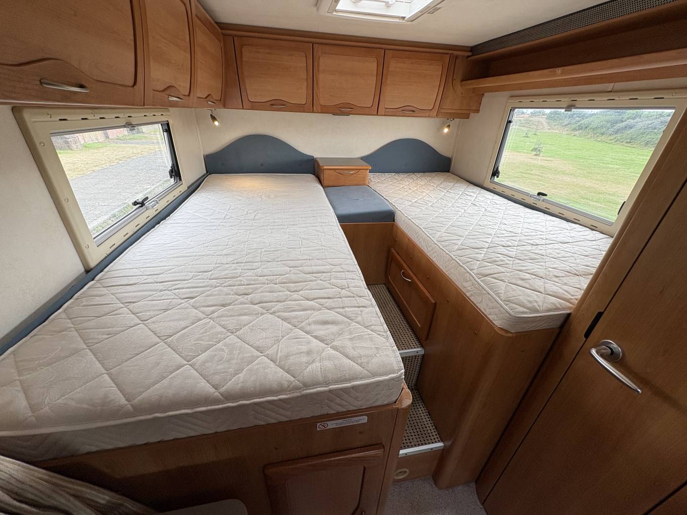 • 6 berth – drop-down over-cab bed, 2 fixed rear single beds and convertible dinette