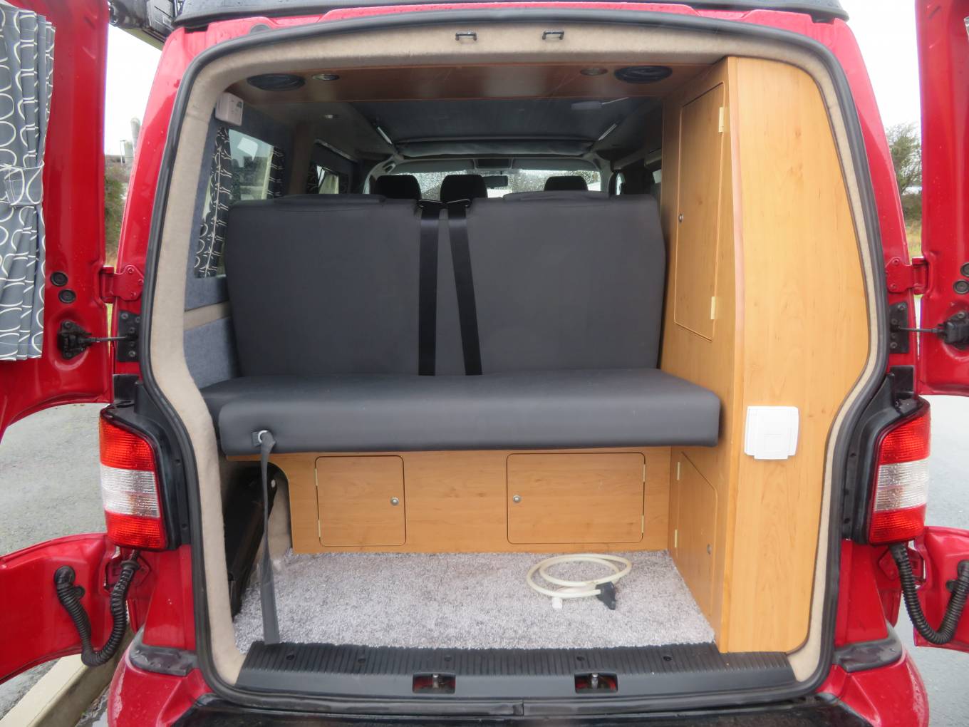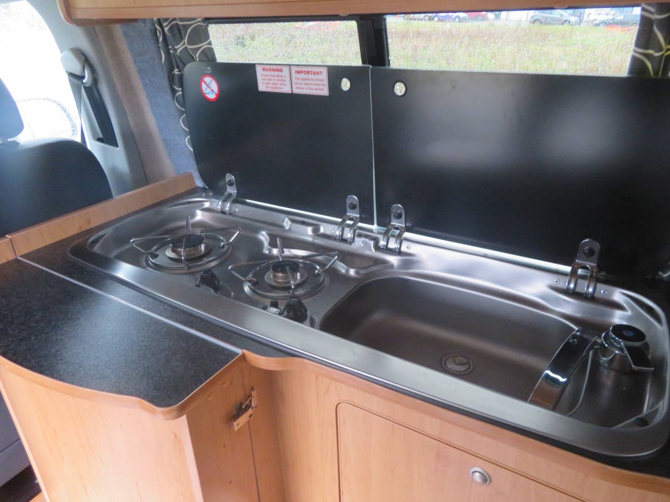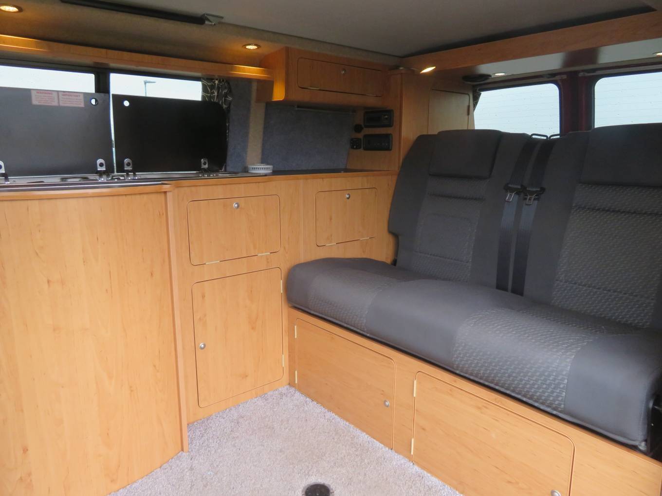 Hillside Leisure is an award winning converter, there conversions are always done to the highest standard, This is a well-regarded model built on the SWB-wheelbase Volkswagen T5 Transporter chassis T30 2.0-litre 102 TDI. This design allows it to function like a larger motorhome while retaining the compact footprint of a van! The interior features a twin front swivel seat that also folds over and rear RIB seat (with seatbelts) that converts into a double bed. The pop-top roof includes an additional roof bed, making it a 4-berth. The galley-style kitchen is well-equipped with a three-burner gas hob, an oven and grill, a sink with hot and cold running water, and a 50-litre fridge with a freezer compartment.