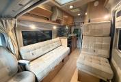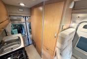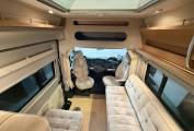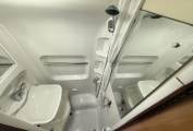 The washroom is found at the rear of the motorhome, it has a shower tray with shower head on a rising rail and a shower curtain, a fold-down wash-basin with chrome mixer tap, a mirrored medicine cabinet above plus a Thetford cassette toilet with electric flush. The clever, flexible layout features a central lounge and dining area. The front seats rotate to join the rear lounge, creating a sociable space with four single seats for entertaining or relaxing. Alternatively, the driver-side rear seat can be converted into a bench seat. At night, this area transforms into either a large double bed or two single beds, offering access to the toilet even when set up for sleeping.