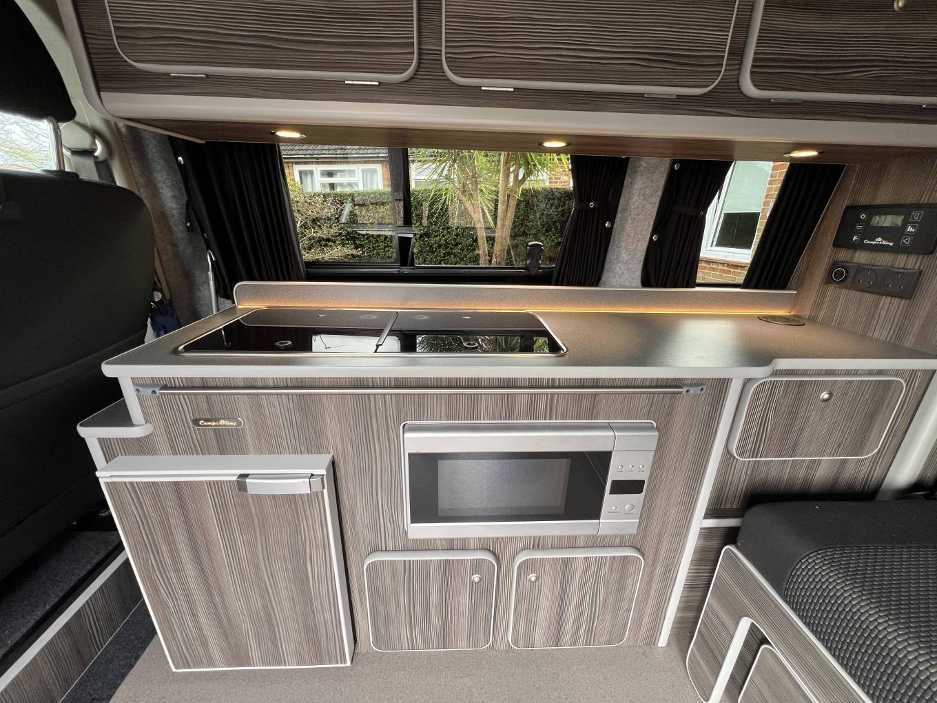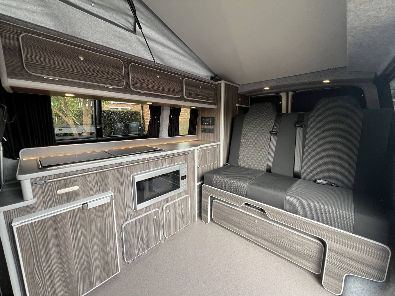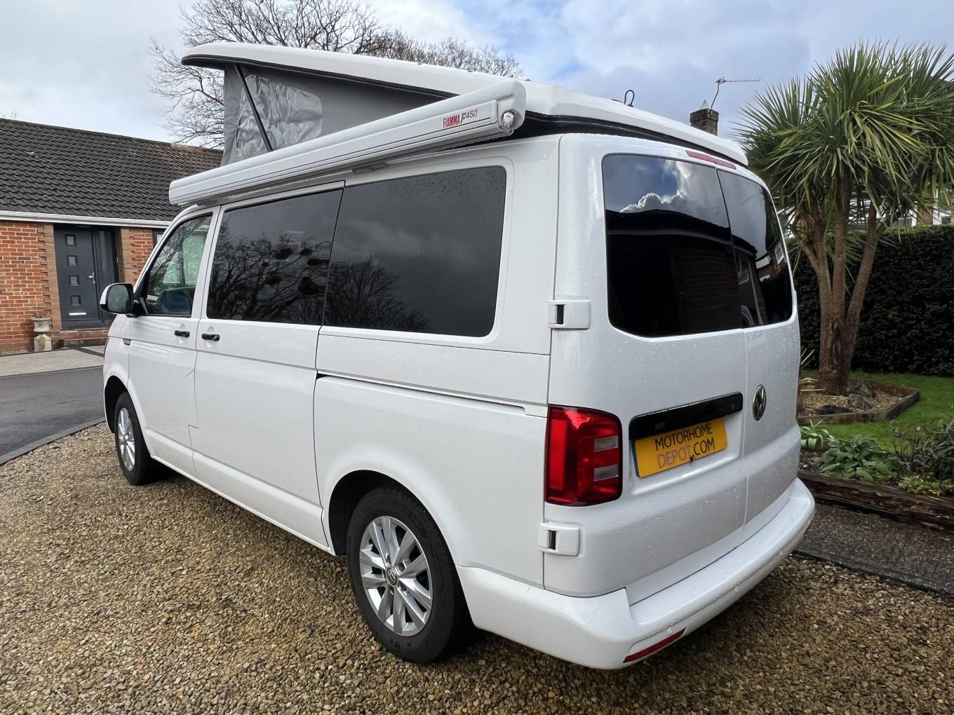Motorhome Depot Southampton are pleased to present this VW T6 S-Line TDI CamperKing Monte Carlo, offering a 4 berth campervan layout with a pop-top roof and rock and roll bed. Powered by a 2.0L diesel engine with manual transmission, this SWB camper has covered 67,000 miles, in excellent condition and is ULEZ compliant.
