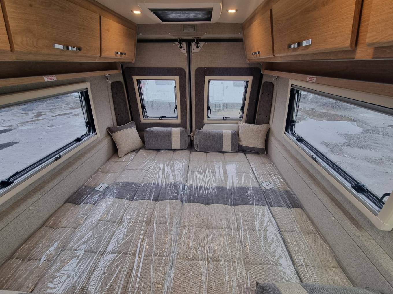 Heating and hot water provided via the dual fuel Truma Heating system with electronic control panel. There is 230v electric hook-up along with twin lithium leisure batteries supported by a roof mounted solar panel. An on board underslung LPG tank provides gas power for cooking and heating or to use the fridge on gas when "off-grid".