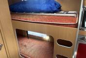 The clever layout provides a variety of sleeping options, including rear single bunk beds, a large overcab double bed, a dinette that converts into a double, and an additional dinette that converts into a small single, offering true flexibility for different travelling needs. During the day, the living areas feel bright and comfortable thanks to blinds and flyscreens throughout, removable rugs, and excellent storage solutions spread throughout the motorhome.