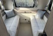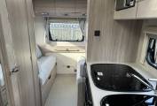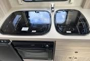 The intelligent layout features a rear lounge that converts into a generous transverse double bed, alongside a centre dinette that provides two rear travel seats and converts into a small single bed, perfect for a child. During the day, the lounge offers a bright and relaxing space, enhanced by swivel cab seats, removable carpets, and blinds and flyscreens throughout, creating a welcoming, home-from-home atmosphere.