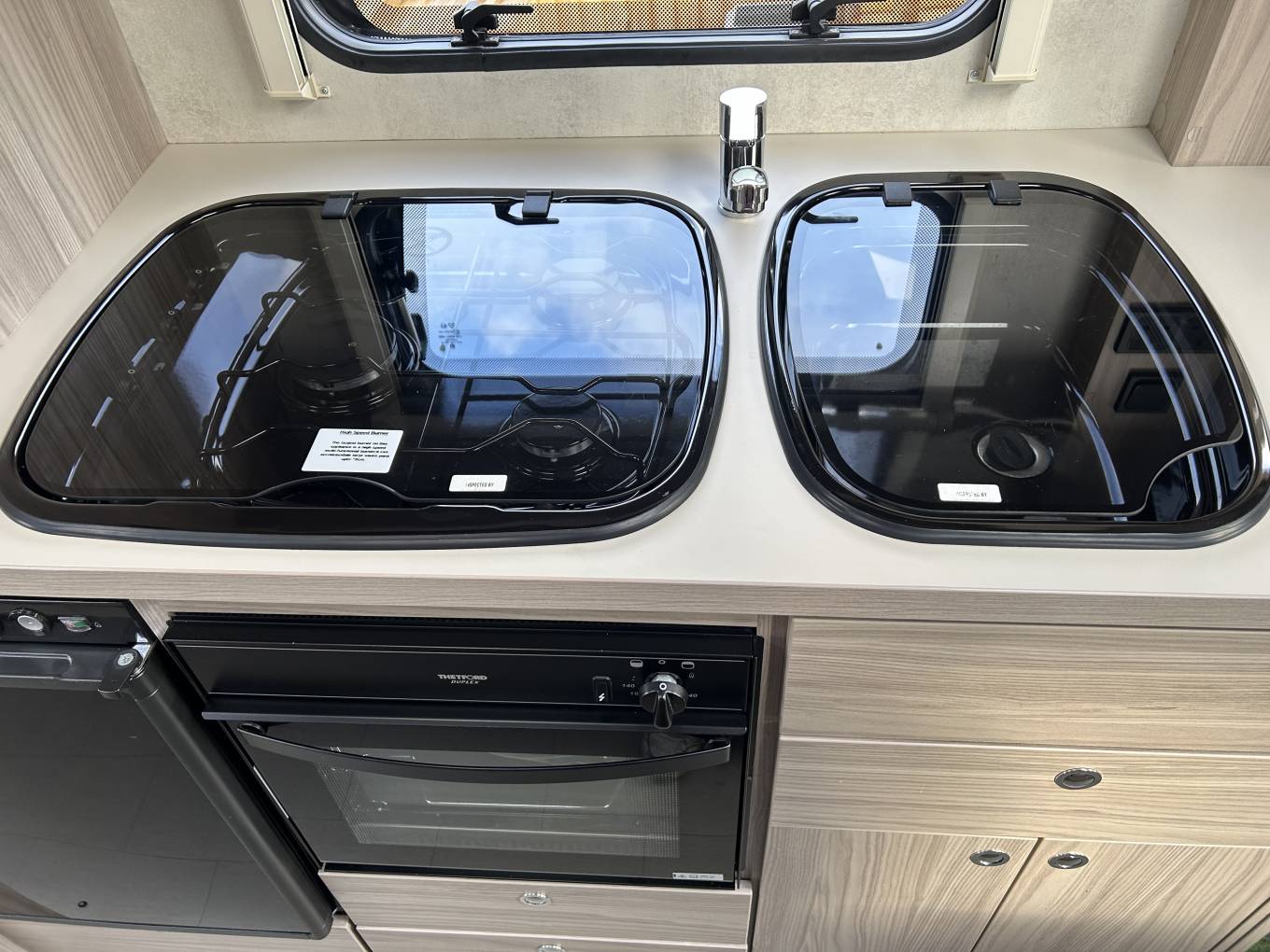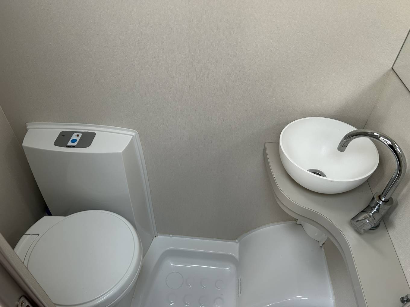 The kitchen is well specified with a Thetford Duplex oven and grill, a three-burner high-speed hob designed for larger saucepans, Dometic mini fridge/freezer, and microwave, while the washroom includes a Thetford toilet, wash basin, and shower facilities for complete independence. Comfort is assured year-round thanks to the efficient Whale heating and Whale water system, supported by cab air conditioning for warmer journeys.