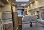The Luxury Driver and Passenger pilot seats are covered in the living area upholstery with padded adjustable armrests which tilt at both sides. The seats also rotate by 180° for integration into the lounge seating area. You also have high, all-round overhead storage cabinets with front flaps above the driver’s cabin.