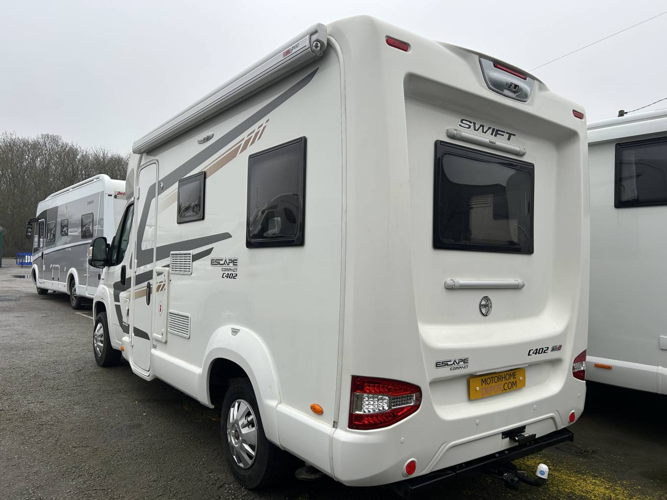 This well-specified 2021 Swift Escape Compact 402 is a clever and versatile 3300kg, 5.99m, 2-berth motorhome with 4 travel belts and 10920 miles, making it ideal for couples who want extra passenger capacity without sacrificing comfort or driveability.
