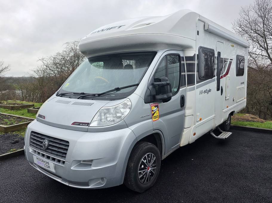 Motorhome Depot proudly presents the Swift Hi-Style 624 FB, a 4-berth, 4 belt motorhome featuring a fixed bed and less than 29,000 miles on the clock. Built on a Fiat Ducato 2.3L engine with a 6-speed manual gearbox, it is designed for comfort and functionality.