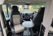 As you enter the camper the 2 front Captain seats which swivel around to a table, creating a fantastic lounge/dining area to relax in once you have reached your destination.