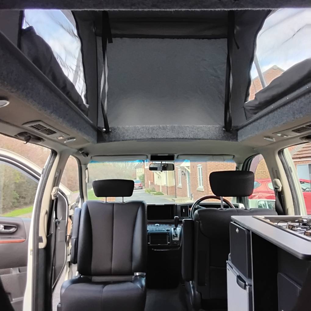Experience real comfort style and adventure with this stunning Nissan Elgrand Highway Star Mistral Campervan. This beautifully converted (by the Campervan Centre) 4-berth camper combines refined comfort with practical touring capability, making it perfect for family getaways, couples’ escapes, or off-grid adventures in style. Spacious yet compact, versatile, and packed with thoughtful features, it’s ready to turn every journey into a first-class experience. Cleverly designed to maximise space, it transforms from a sleek day van into a cosy home-from-home in minutes. A high-quality, well-equipped camper offering comfort, reliability, and flexibility. With sleeping space for four, a smart interior layout, and the renowned smooth performance of the Elgrand!