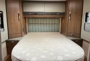 Bedroom - Island bed with lift up mechanism, wardrobe either side of bed, wide drawers underneath, plenty of storage, Avtex TV, with a door to separate from the main body of motorhome.