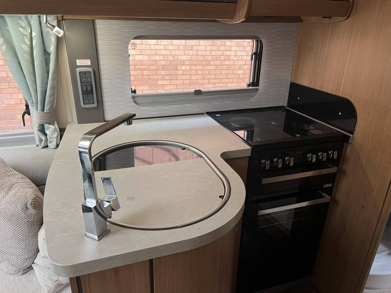 Good sized rear garage beneath the Island bed (could fit bikes with front wheel removed?) Also has a 230v plug socket.