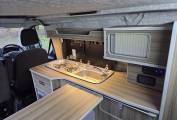This campervan, comes with a pop-top roof and is the perfect vehicle for your next adventure. With 5 seat belts and accommodation for up to 4 people, it provides a comfortable and cosy space to relax and unwind after a day of exploring. It also doubles up as a very useful every day vehicle.
