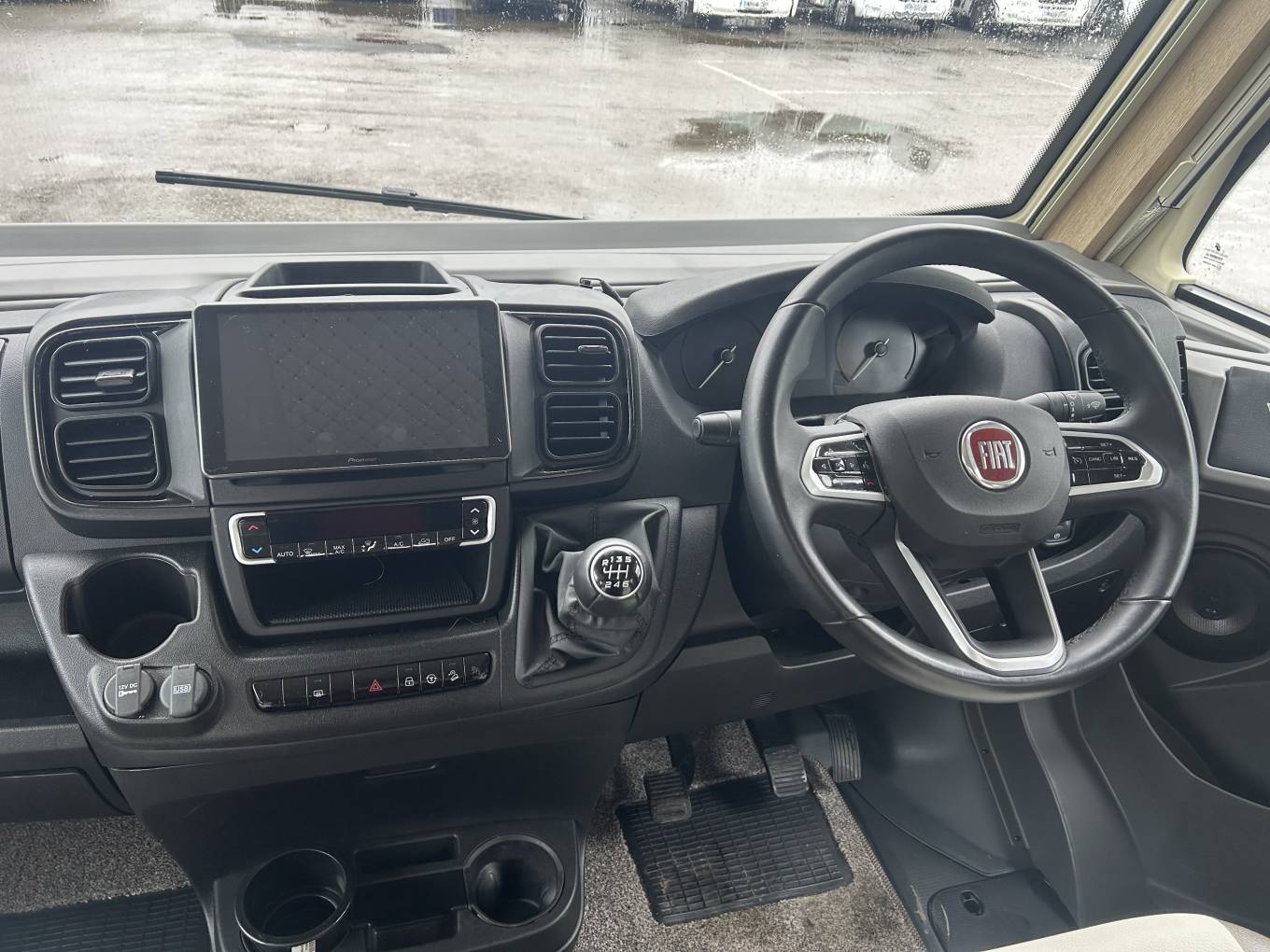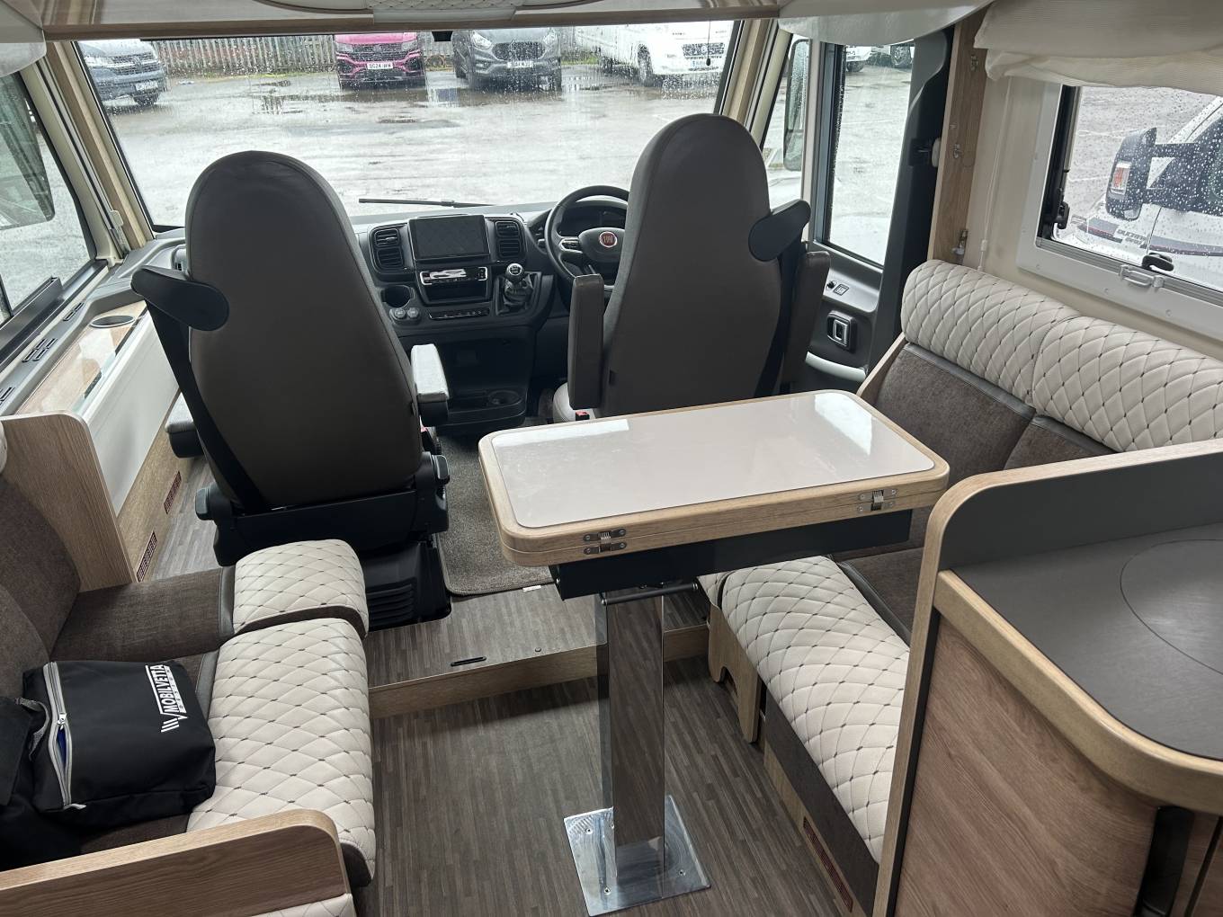 With just 3,646 miles and plated at 3,500kg, this motorhome is equipped with a fantastic specification including a wind-out canopy, heating system, oven and grill, fridge/freezer, microwave, washroom with toilet, TV, USB points, radio, swivel cab seats, reversing camera, solar panel, tracker, and onboard Wi-Fi system, everything you need for comfortable touring straight away.