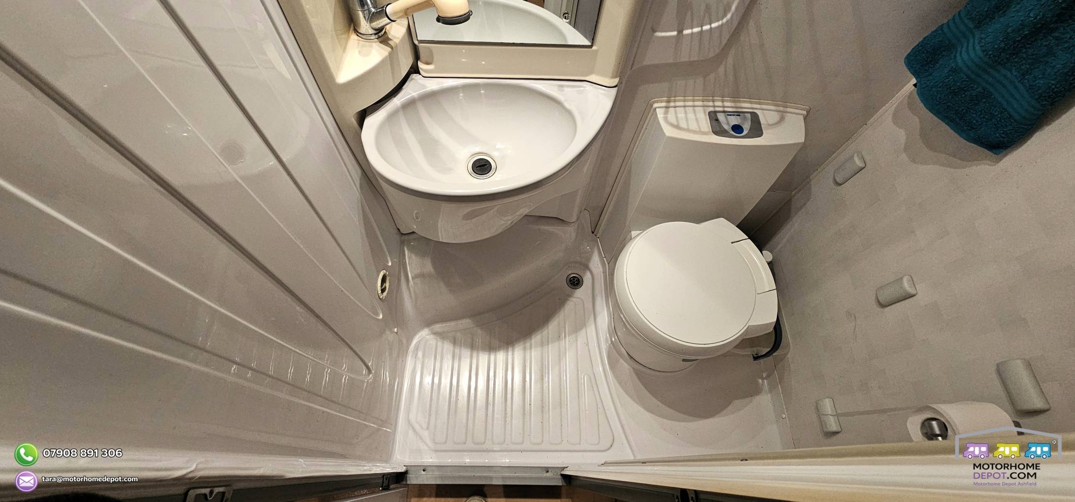The layout consists of an overcab double bed and a versatile front dinette area that can be used as a single and a small double, or one large double depending on preference. To the rear is a full kitchen, with a washroom that folds out to create a separate shower area, a clever and practical configuration for a van of this size.