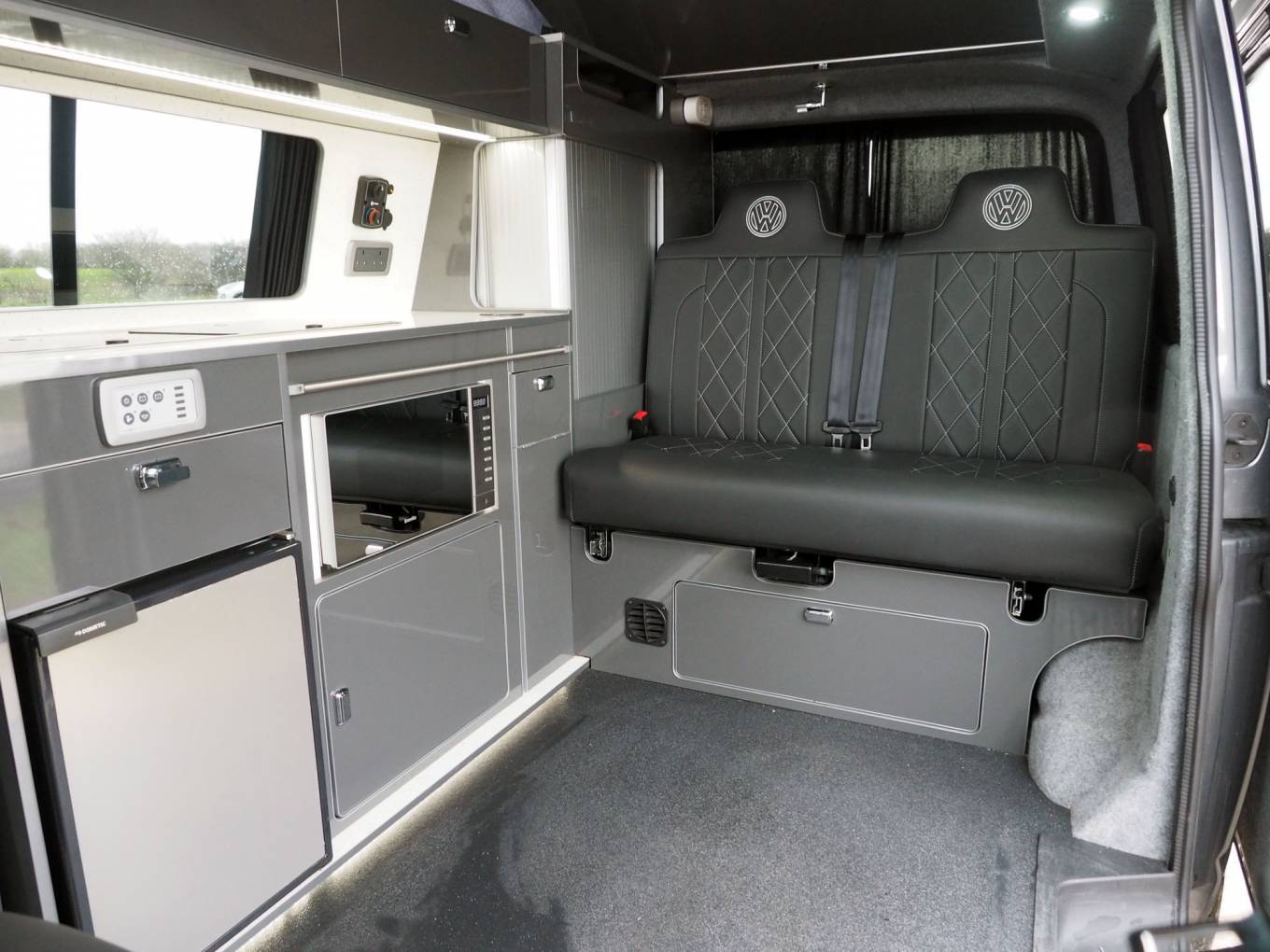 Stylish and understated Highline T28, converted by Accura of Hartlepool in 2021 with excellent specification and build quality, including Fabworx rear seat bed, Propex heating, full electrics, cold water system. In very clean order throughout with very little signs of use, this 6 speed Transporter has the desireable 150bhp engine, whilst Highline specifiction includes front and rear reversing sensors, cab air conditioning, cruise control and heated windscreen.
