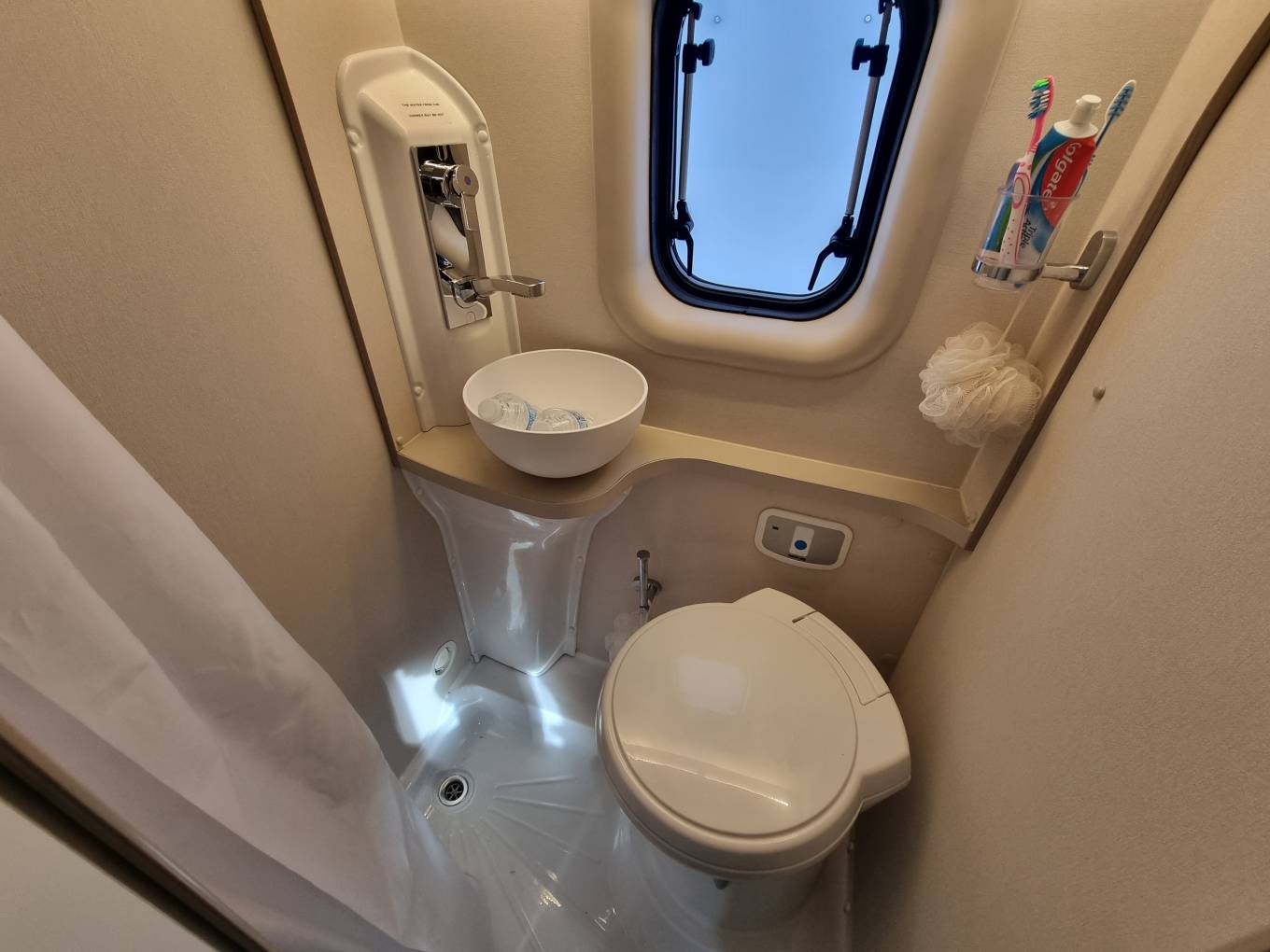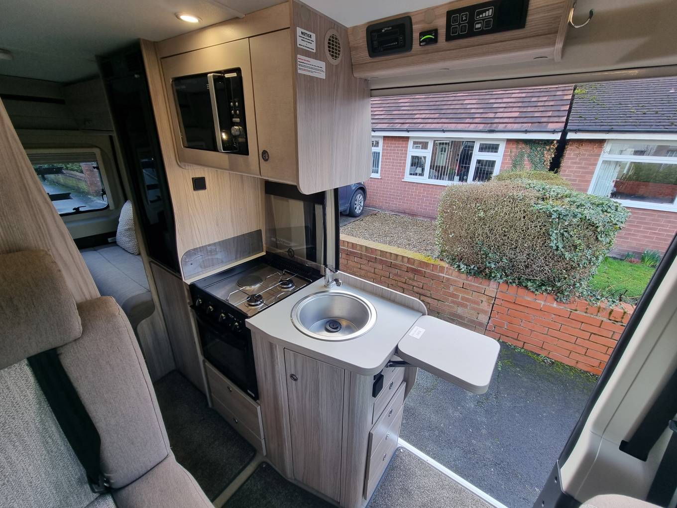 • Kitchen: 3-burner gas hob, grill, sink, fridge with freezer compartment • Washroom: Cassette toilet, shower, basin