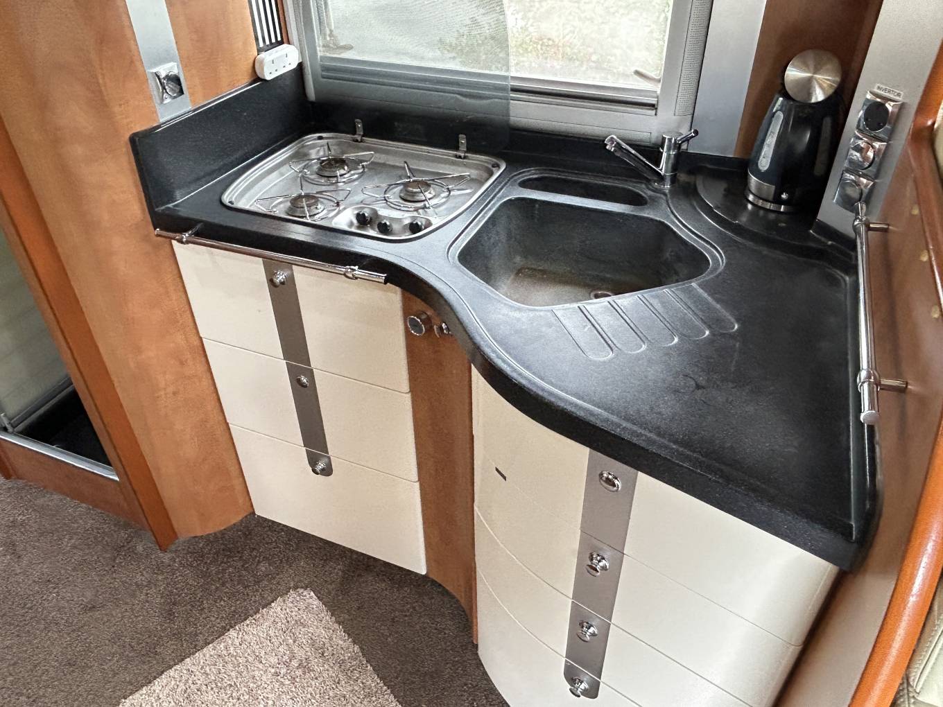 Every detail has been carefully considered, including refillable Gaslow bottles for convenience, a large separate shower for genuine comfort, and a full alarm system for peace of mind wherever you stay.