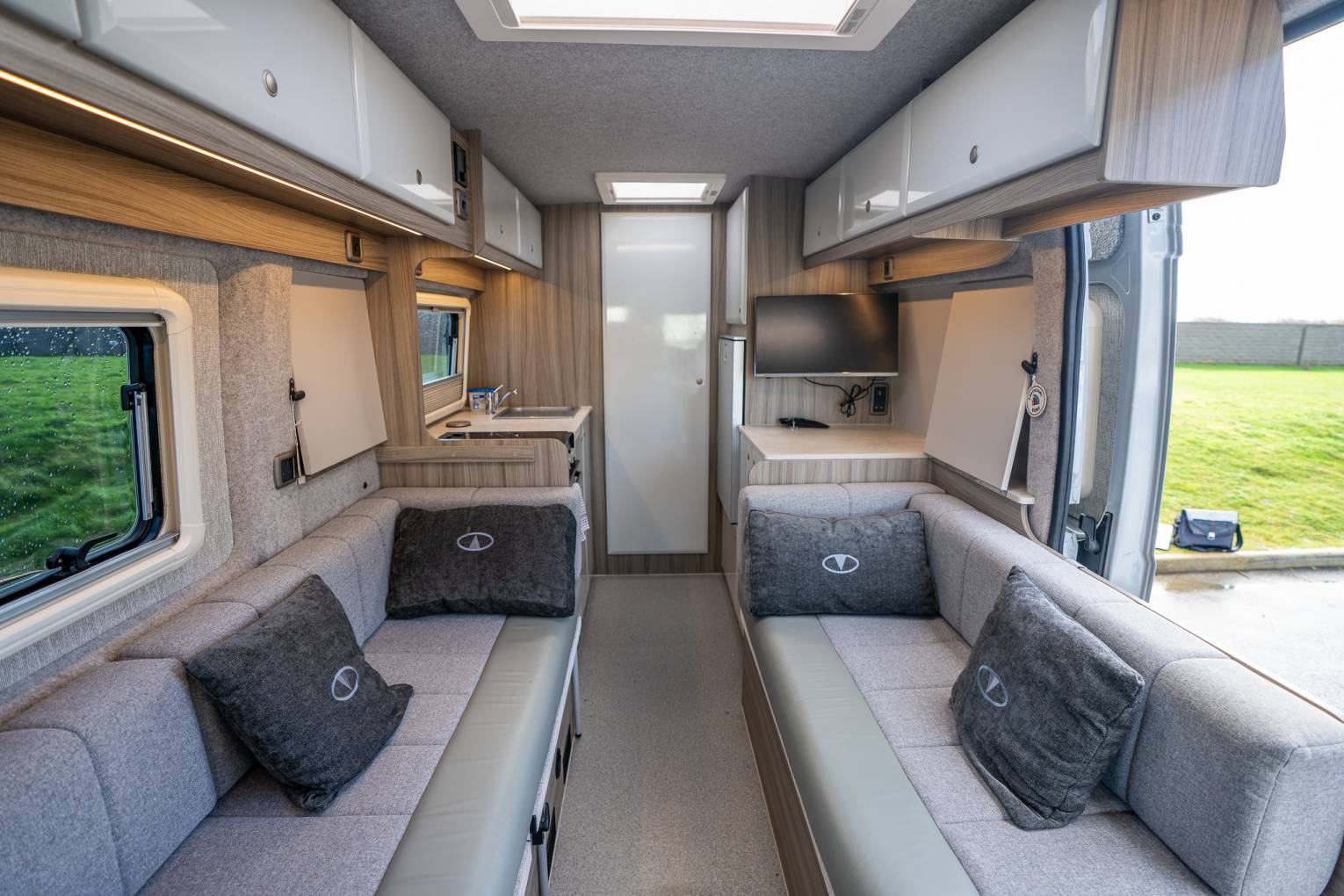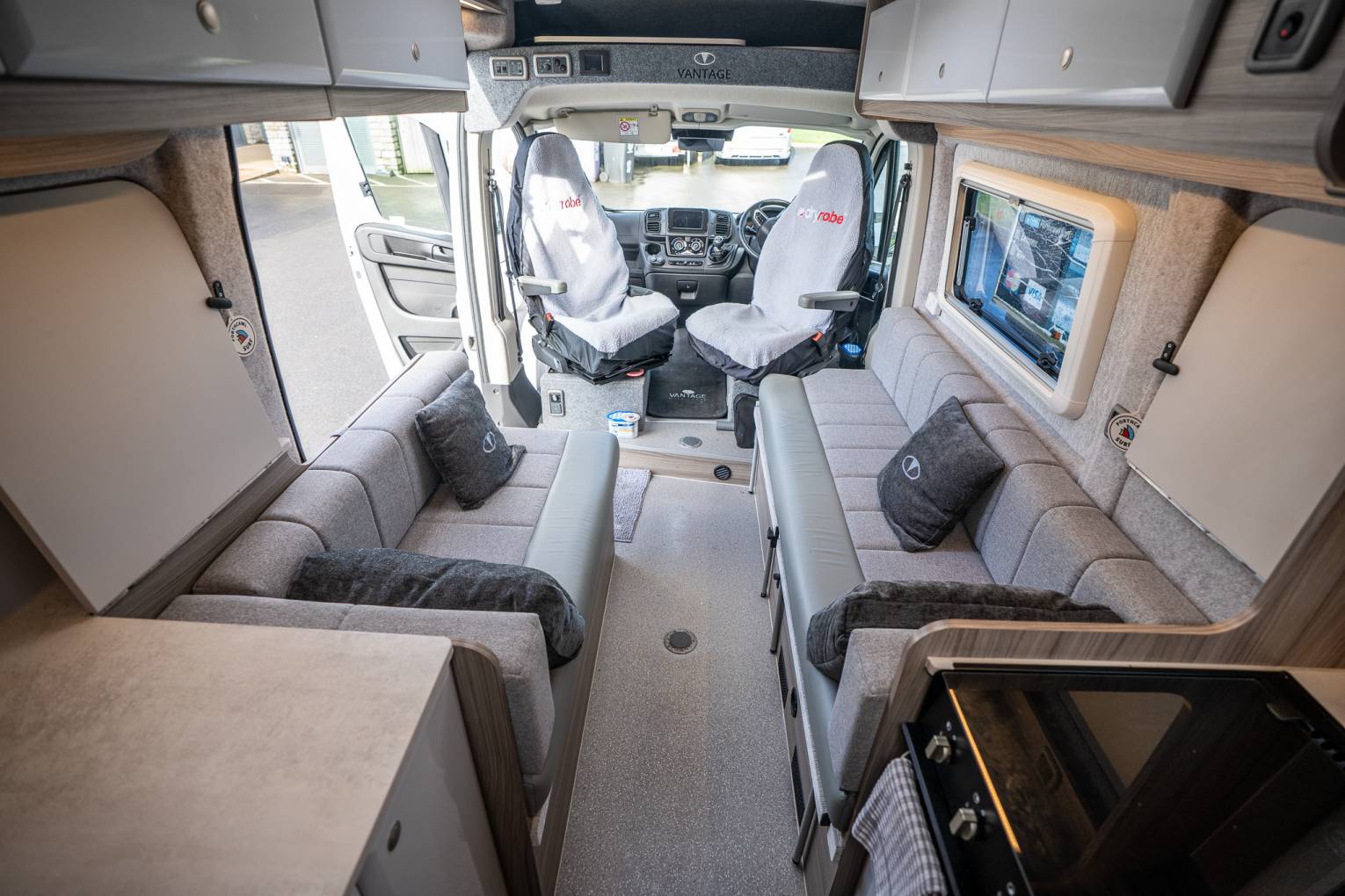 With its expansive open‑plan layout, the Vantage VUE sets the benchmark for front‑lounge, Rear washroom motorhome conversions. This luxury model delivers outstanding flexibility and effortless drivability without sacrificing comfort. The impressive lounge, Accessible by the sliding Habitation door, creates a bright, open atmosphere ideal for dining or unwinding. The generously sized, well‑equipped kitchen offers abundant worktop space and storage, complete with a full oven, fridge‑freezer, and everything need to make the VUE feel like a true home on wheels. Twin sofas provide exceptional relaxation space and easily convert into either two single beds or a spacious double. Whilst the large washroom, which is accessible from the Hab or the rear door, means you have that extra versatility out on the road. Wherever you’re headed, the VUE lets you travel in comfort and style.