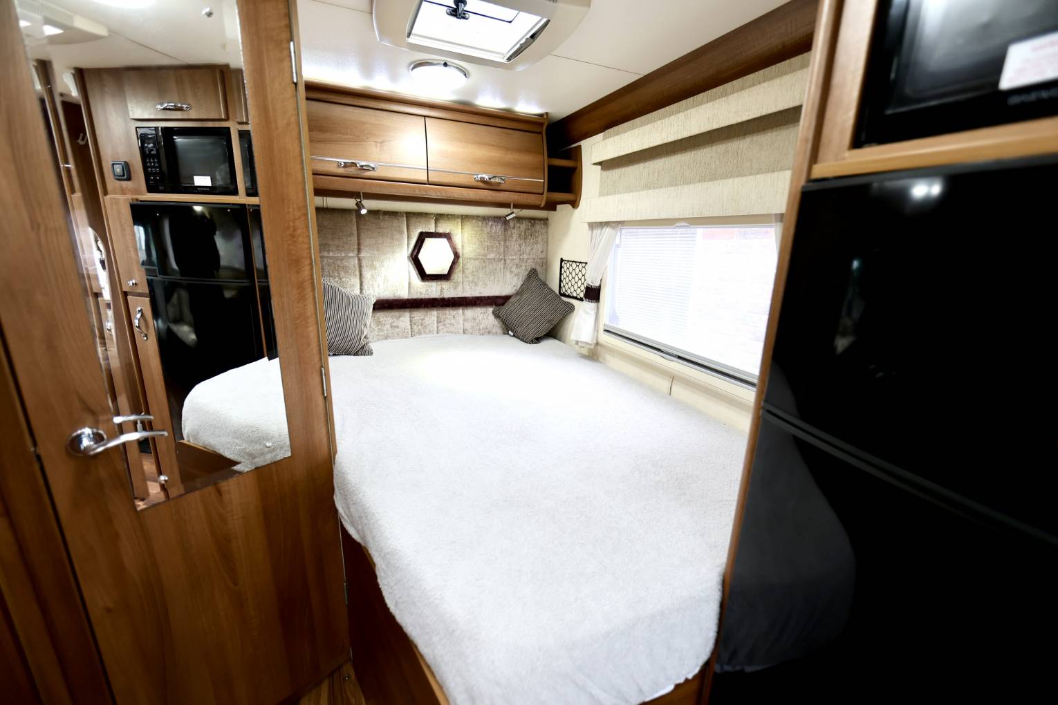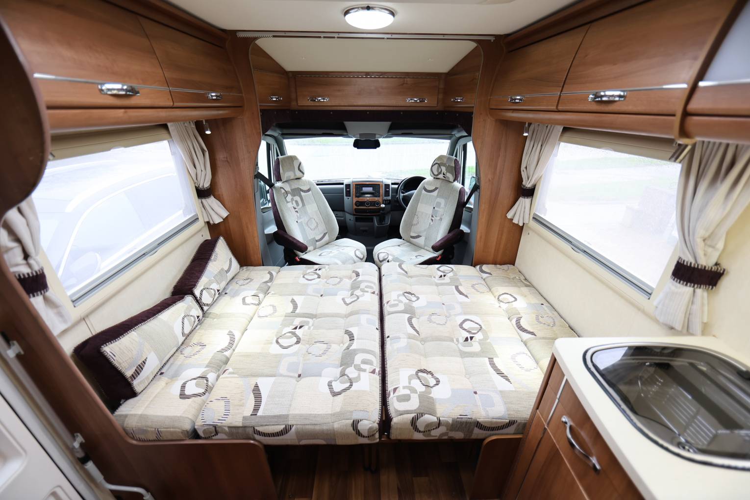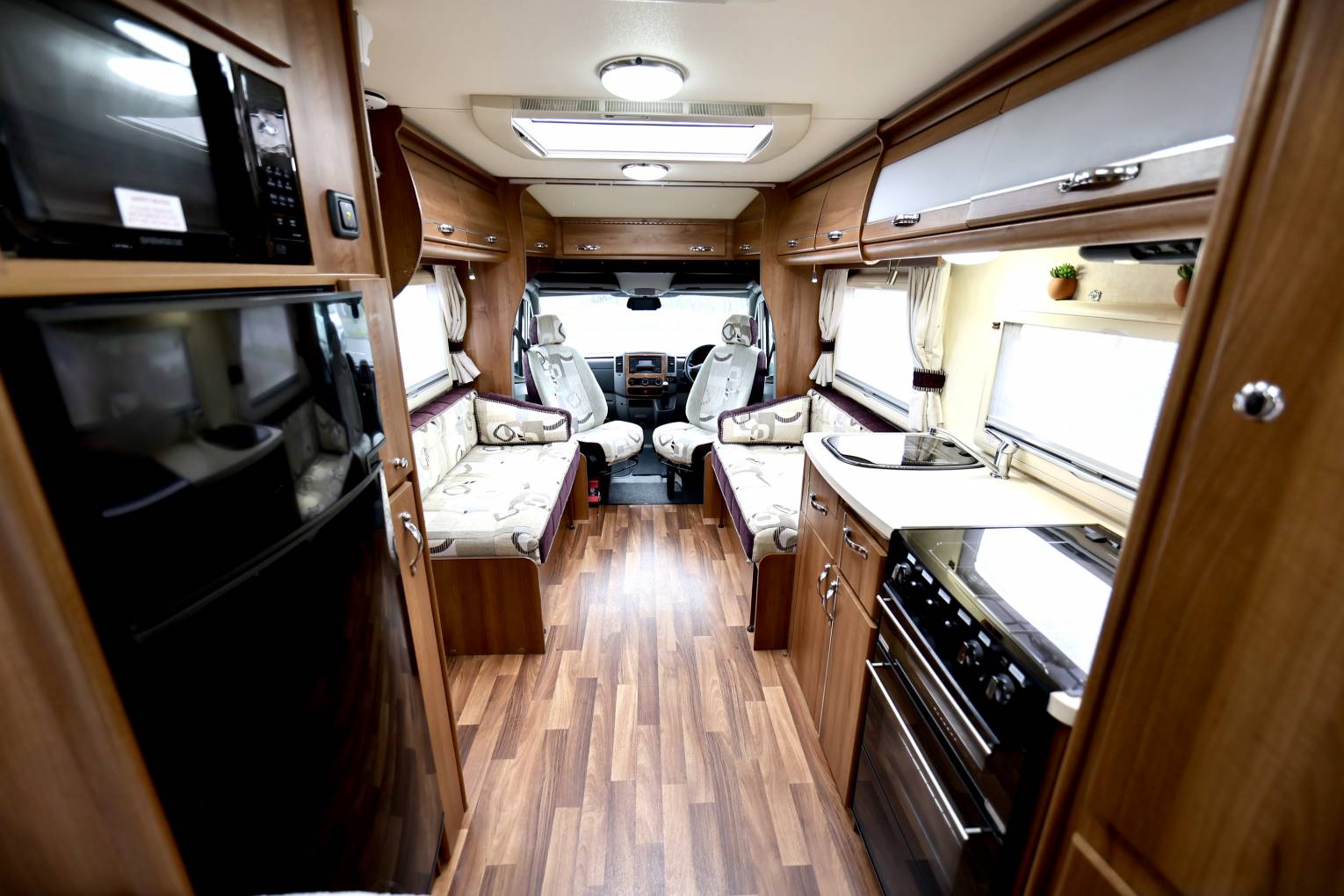 This motorhome is like home from home, with luxury of a double bed an on sweet shower room and separate toilet area, there is also a sizeable kitchen area giving you an comfortable amount of room to cook. The lounge area with swivel seats with soft cushioning, to entertain six people comfortably, the lounge area will also convert into a double bed as well. Being an Auto-Sleeper the quality of the finish is second to none, and being on a Mercedes base makes this motorhome a luxury vehicle throughout.