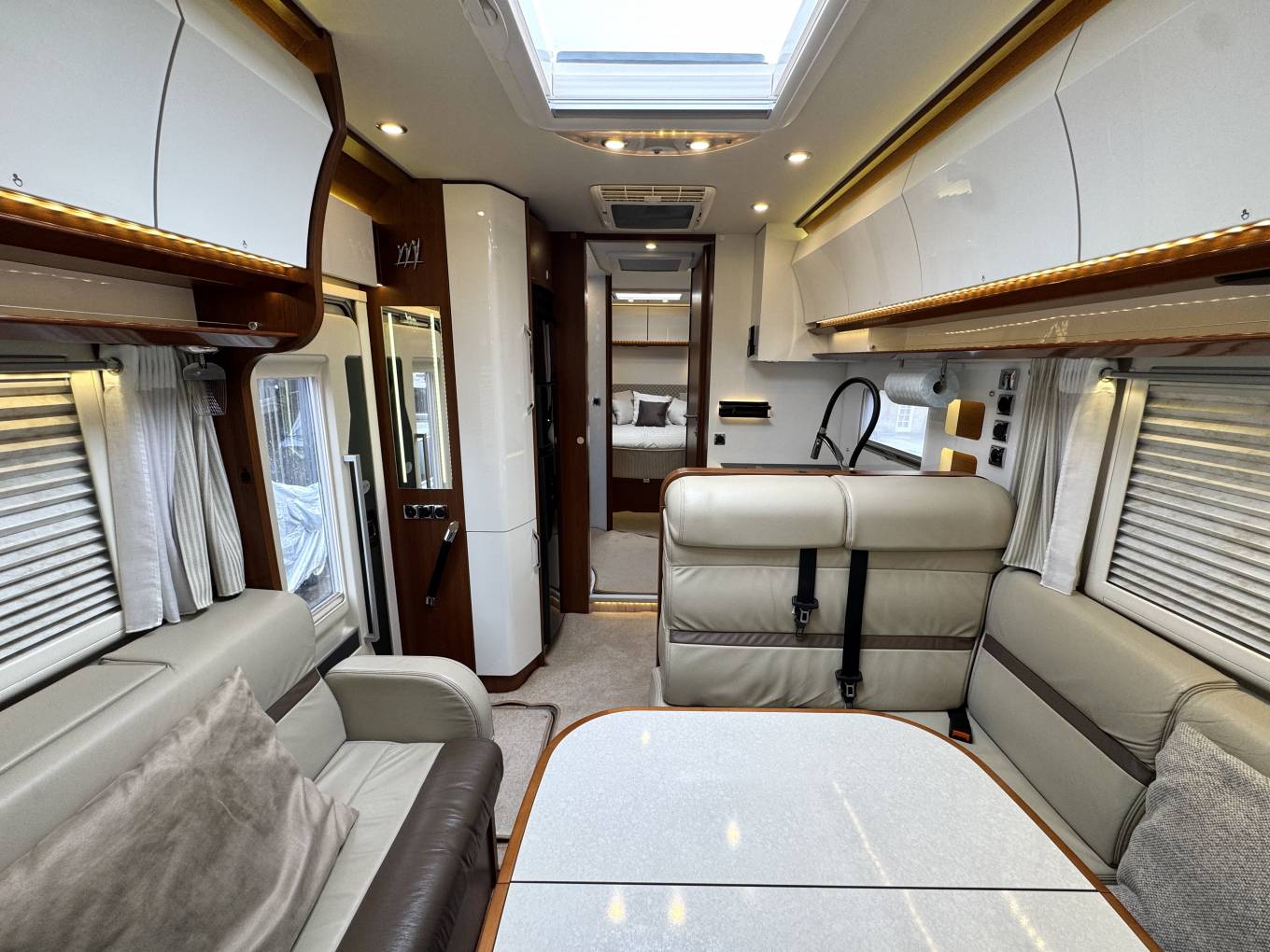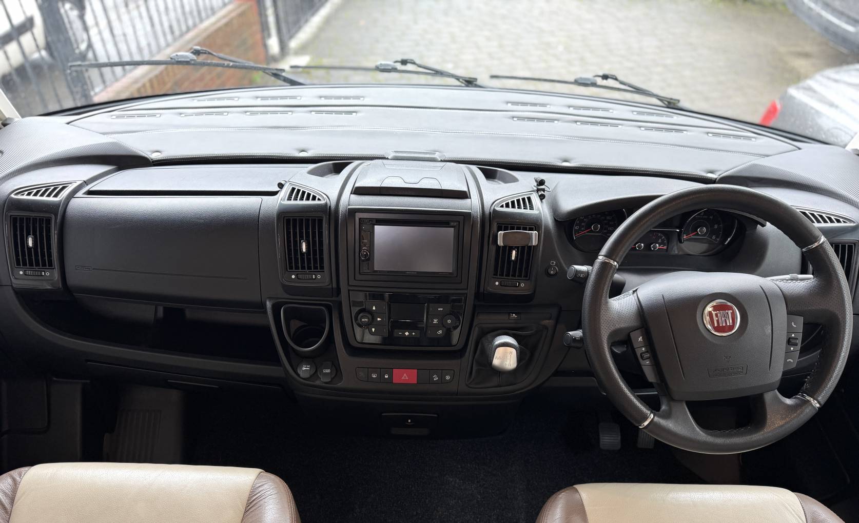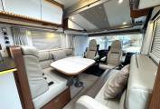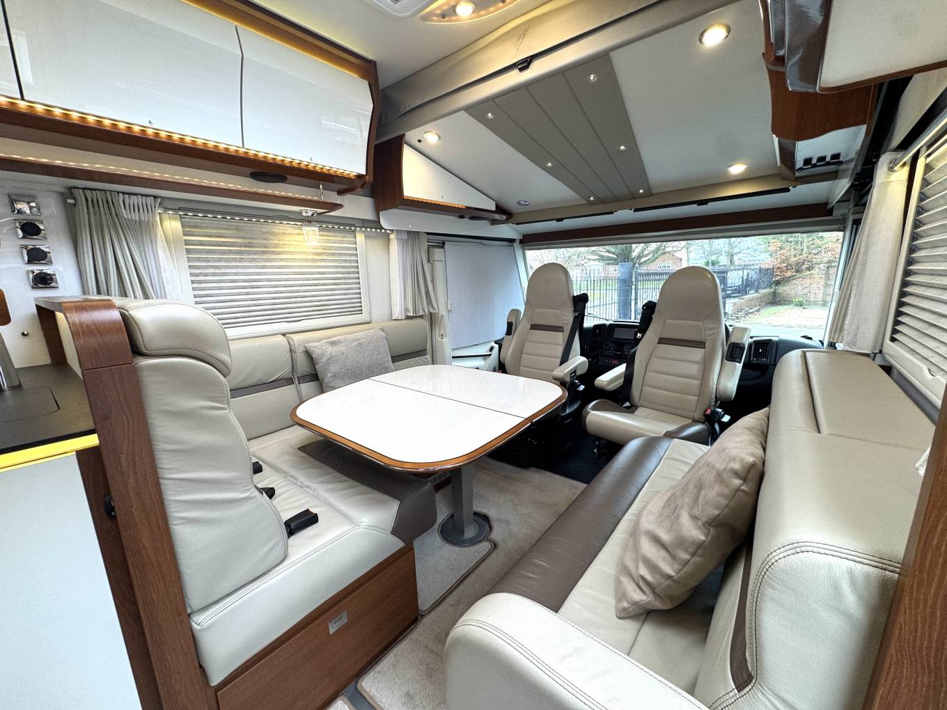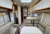 The automatic gearbox provides smooth and straightforward driving. Inside, the upgraded leather upholstery gives a high-quality finish throughout. The motorhome benefits from air conditioning throughout, an underfloor wet heating system, and additional blown air heating, making it suitable for use in all seasons.