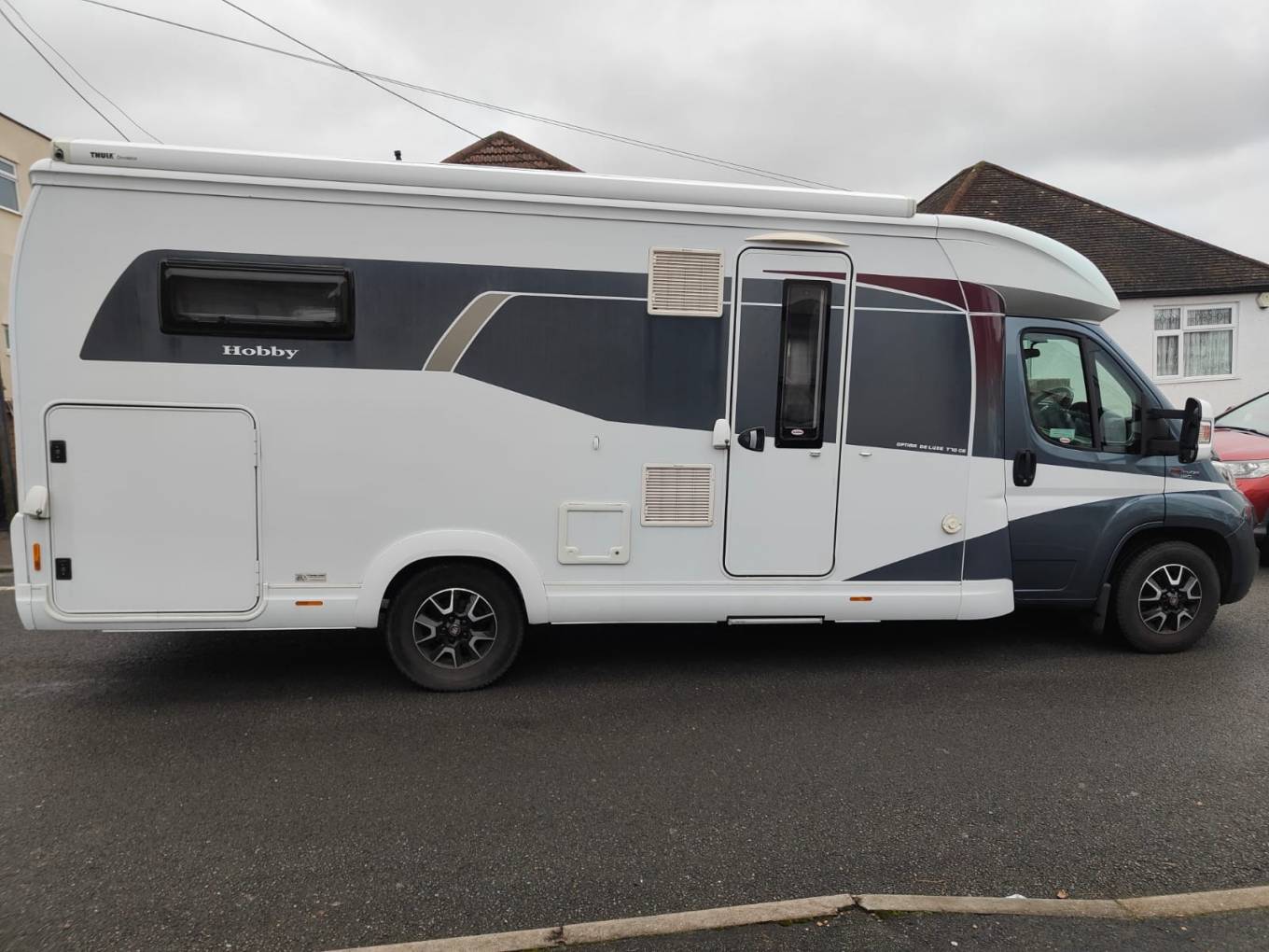 This is an outstanding example of Hobbys Optima 70 GE model. This German built lowline motorhome features fixed singles to the rear with a very well equipped centre kitchen and a spacious front seating area that utilises the 2 rotating Captains chairs. This Hobby is plated at 3500kgs so can be driven by all and benefits from a new timing belt in 2024 and comes with a new Habitation certificate. This high spec example includes the following. Alloy wheels, tv with aerial,reverse camera, cab blinds, oven and a 4 metre awning. Based on the excellent Fiat Ducato cab, this 2.3 multijet diesel variant has a 6 speed manual gearbox, cab aircon, cruise control and satnav. Based in Kent and more pictures available.