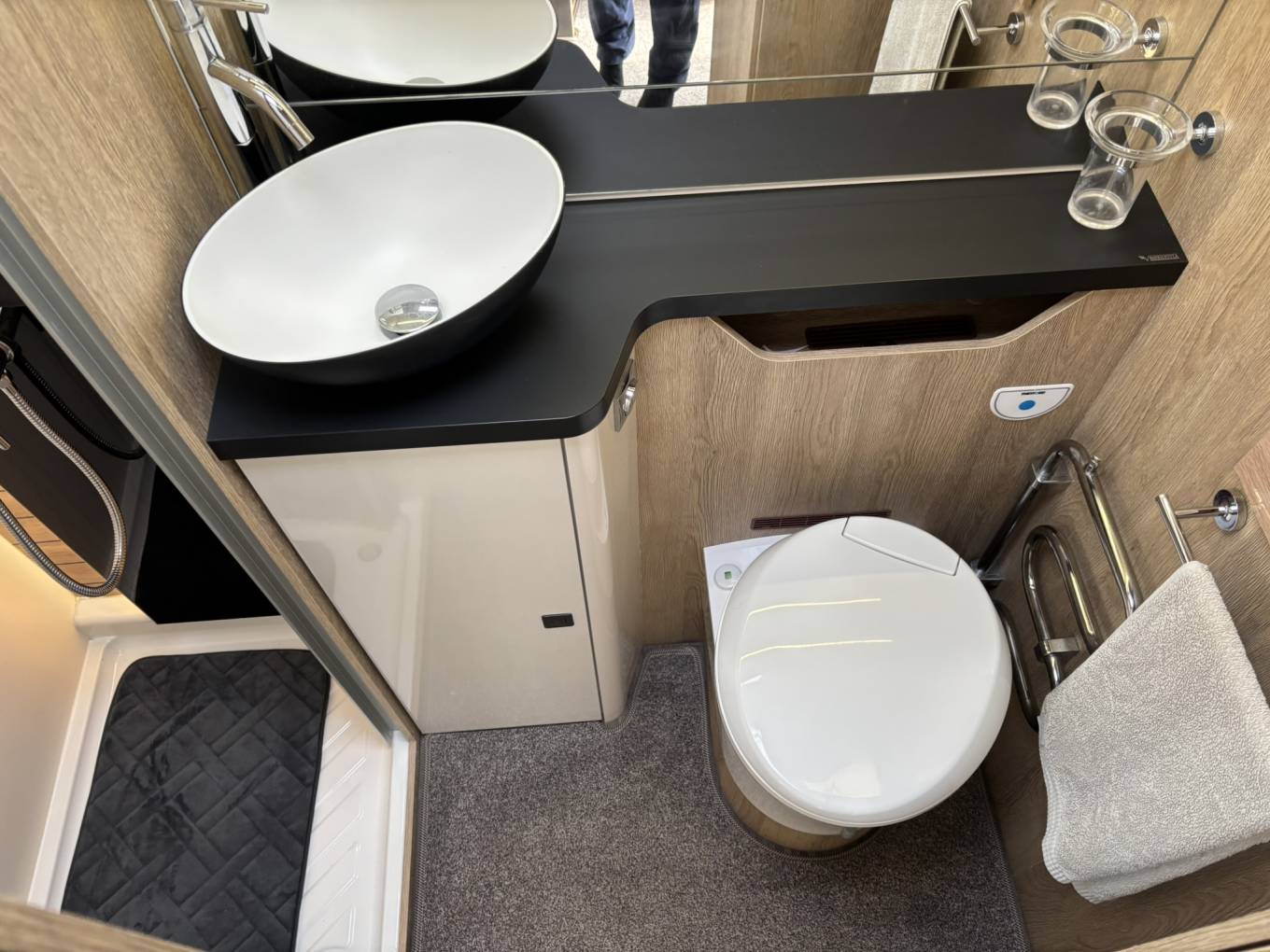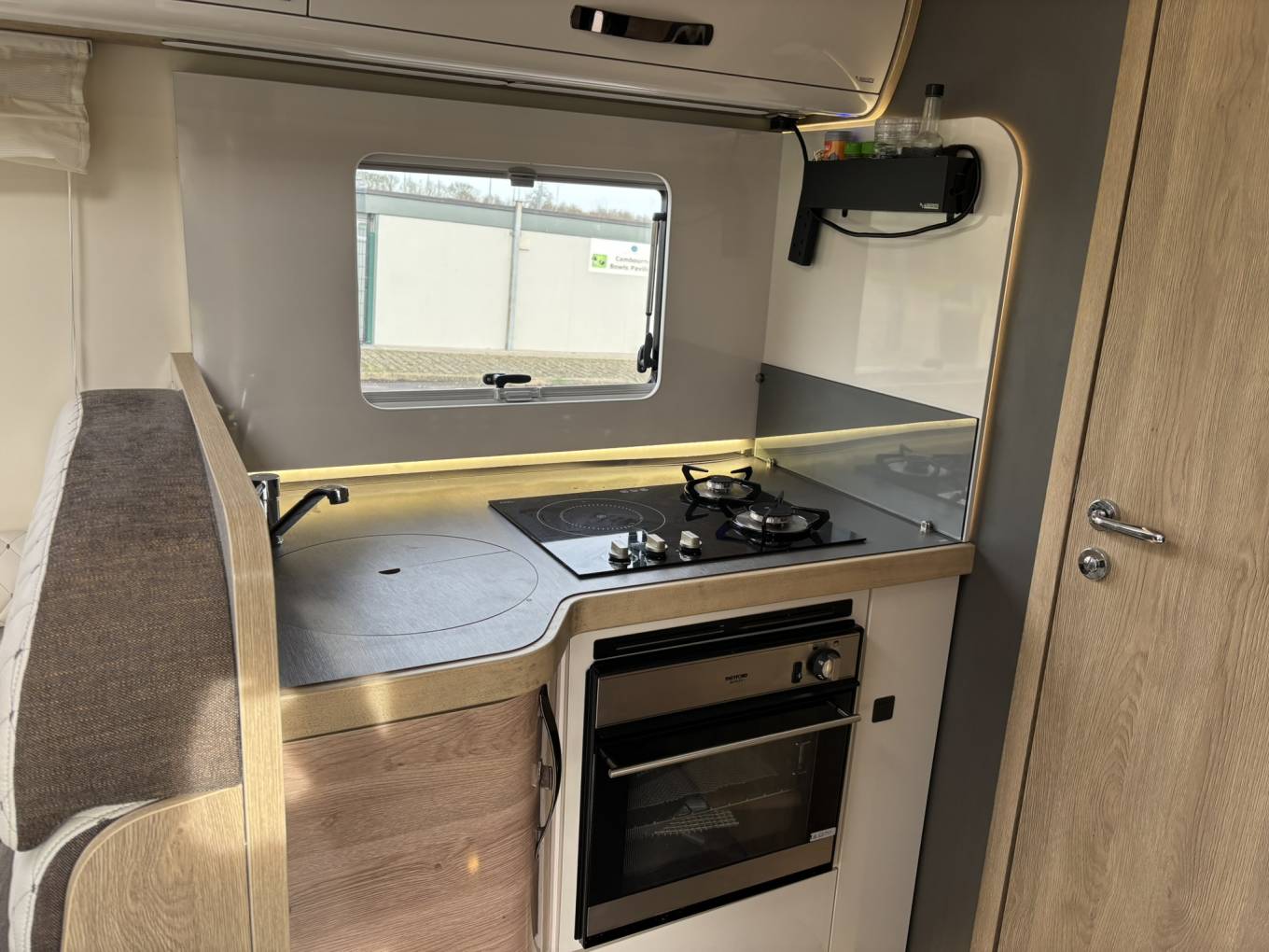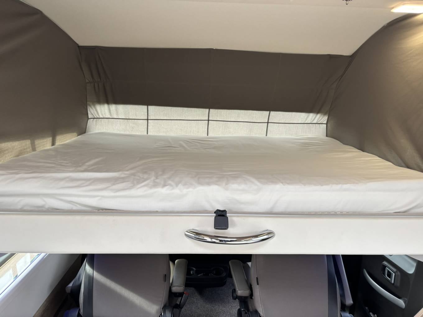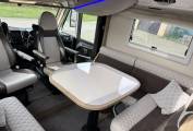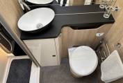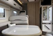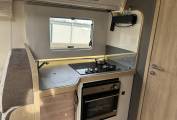 The Tekno Line 59 features a beautifully designed interior that combines space, comfort, and practicality. The rear washroom is a standout feature, offering a separate shower cubicle, electric flush toilet, vanity unit, and ample storage, creating a true home-from-home feel. The central kitchen is fully equipped with a multi-burner gas hob, oven/grill, large fridge/freezer, and generous worktop space. At the front, the spacious lounge and dinette area benefits from swivel cab seats, creating a bright and sociable living space. The pull down bed at the front is spacious and easy to maneouvre, and then you have the lounge which converts to a good size single bed.