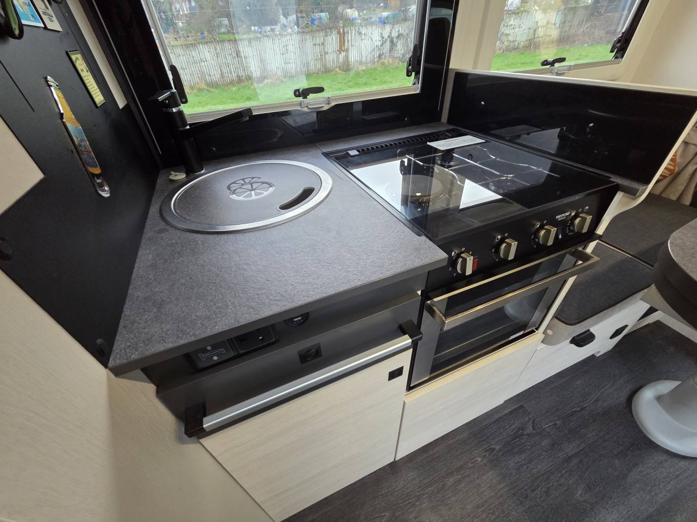 The Chausson 788 Titanium comes with 4 spec levels and this is the top of the range Ultimate model which comes with lots of extras included as standard and is quite a rarity on the used market.These features include an upgraded interior, and some upgrades in the kitchen with a Thetford Duplex cooker with mains hotplate and a combined oven/grill as well as the 142-litre AES fridge/freezer.