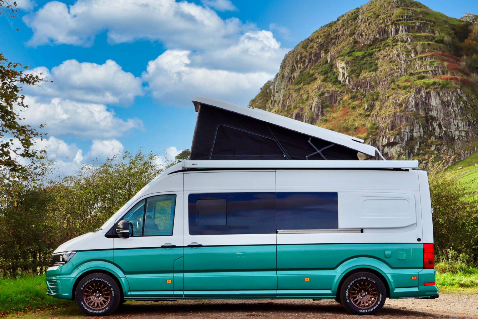 The van lay-out has plenty of comfortable seating with the rear garage built to allow the fitting of 2 mountain bikes. There is impressive storage space throughout.