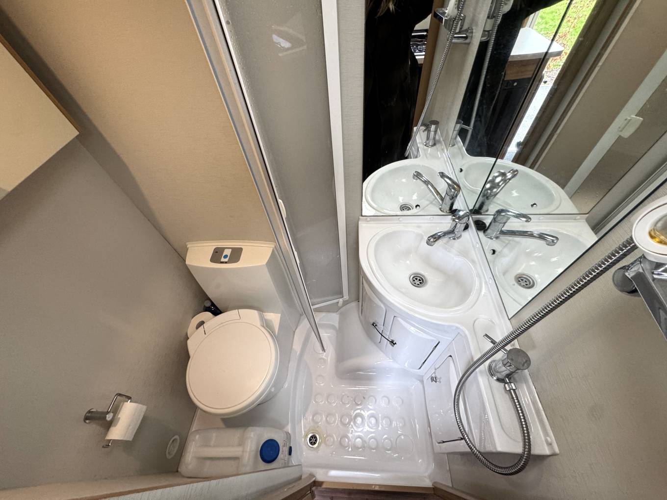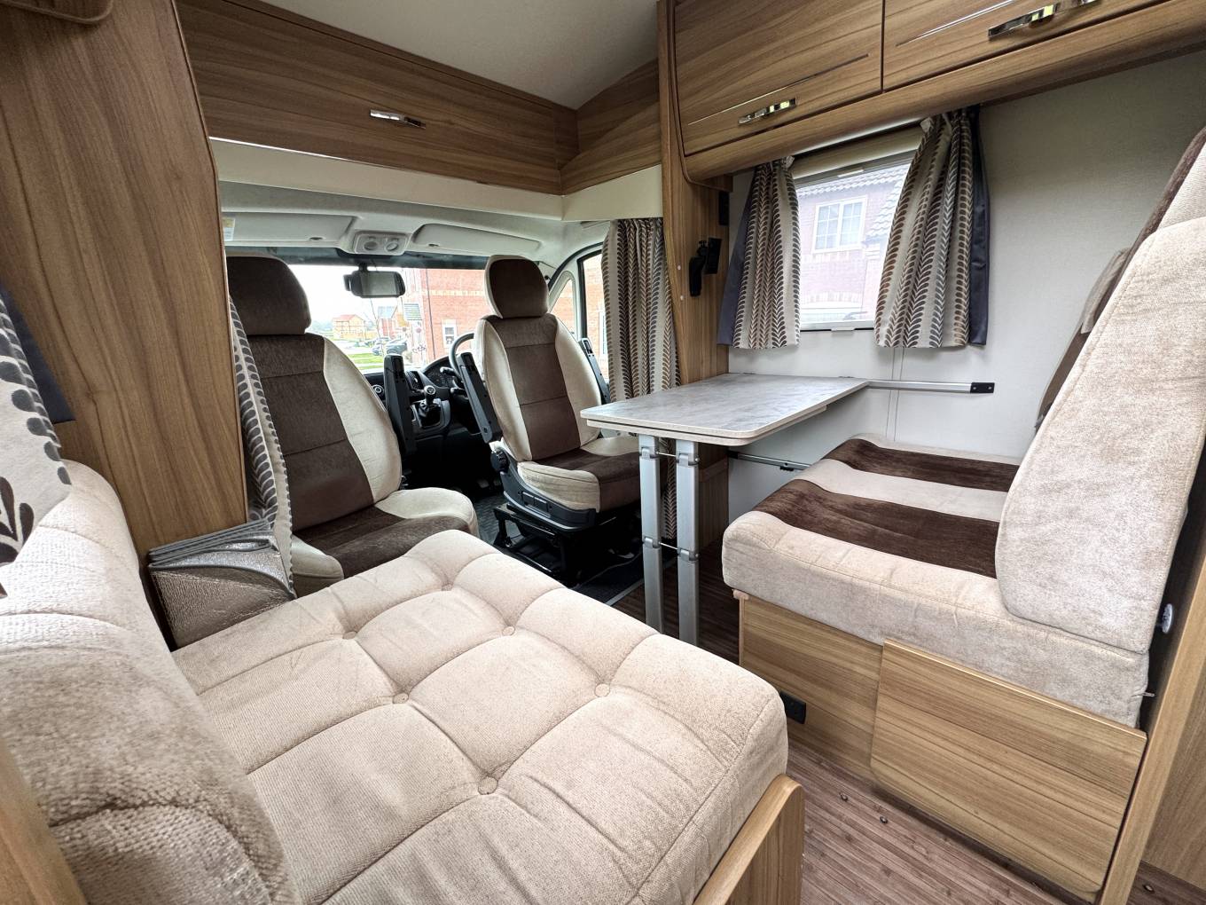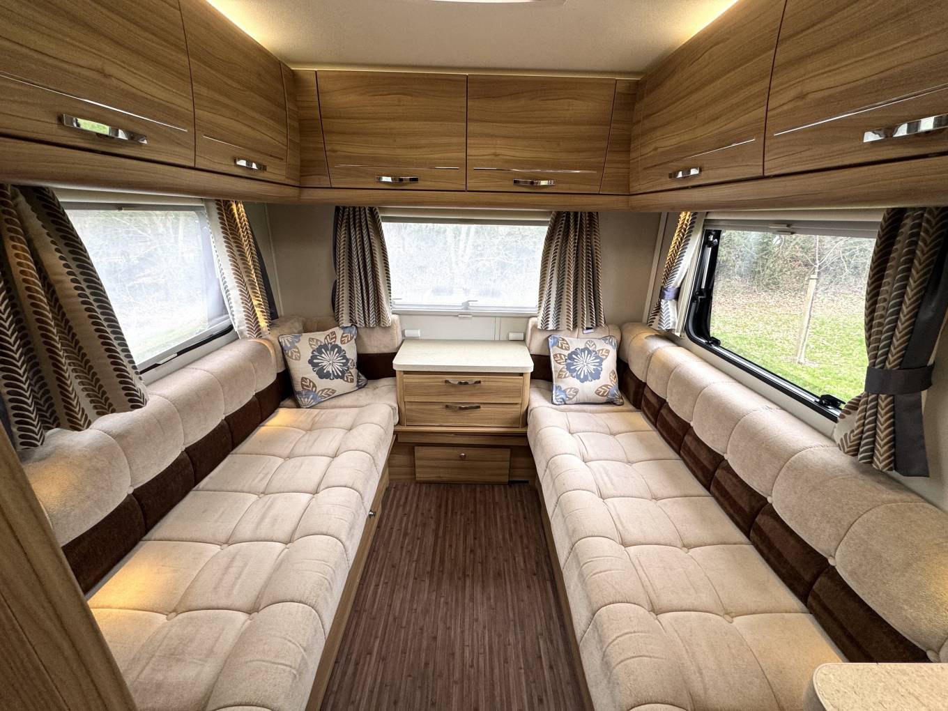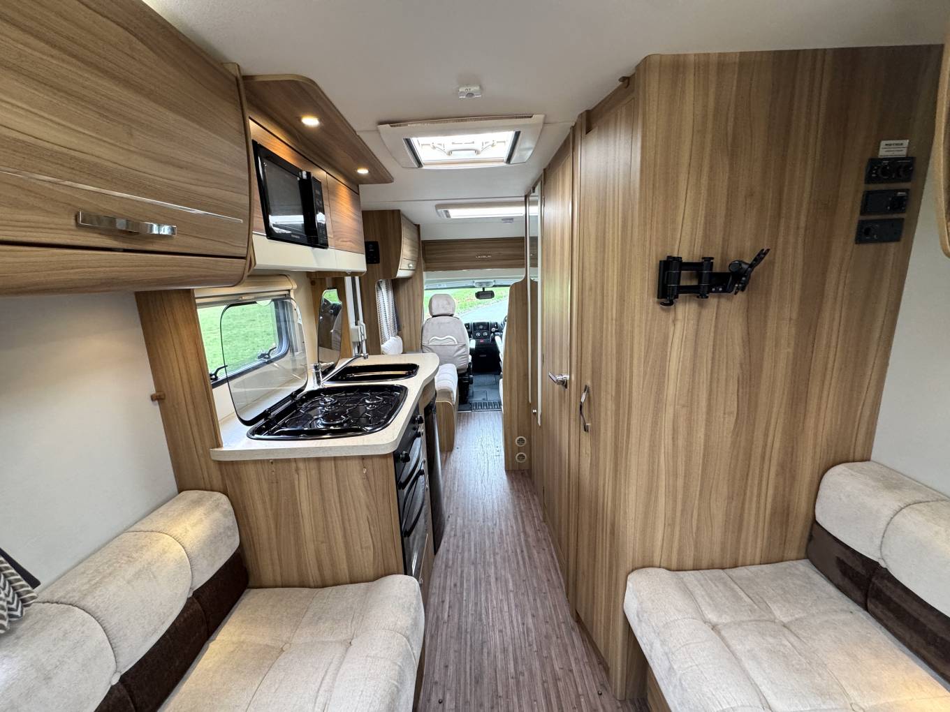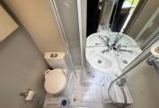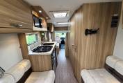 Stepping inside, you have a well-equipped kitchen positioned centrally, offering ample worktop space, storage and everything neatly laid out for preparing meals on the go. Opposite, the washroom provides a practical and private space with toilet, basin and shower facilities. To the rear is the standout feature — the generous end lounge with long parallel settees, large surrounding windows and plenty of overhead storage. It’s a bright, airy area perfect for relaxing during the day and easily converts into either two single beds or one large double at night, offering flexibility to suit your needs.