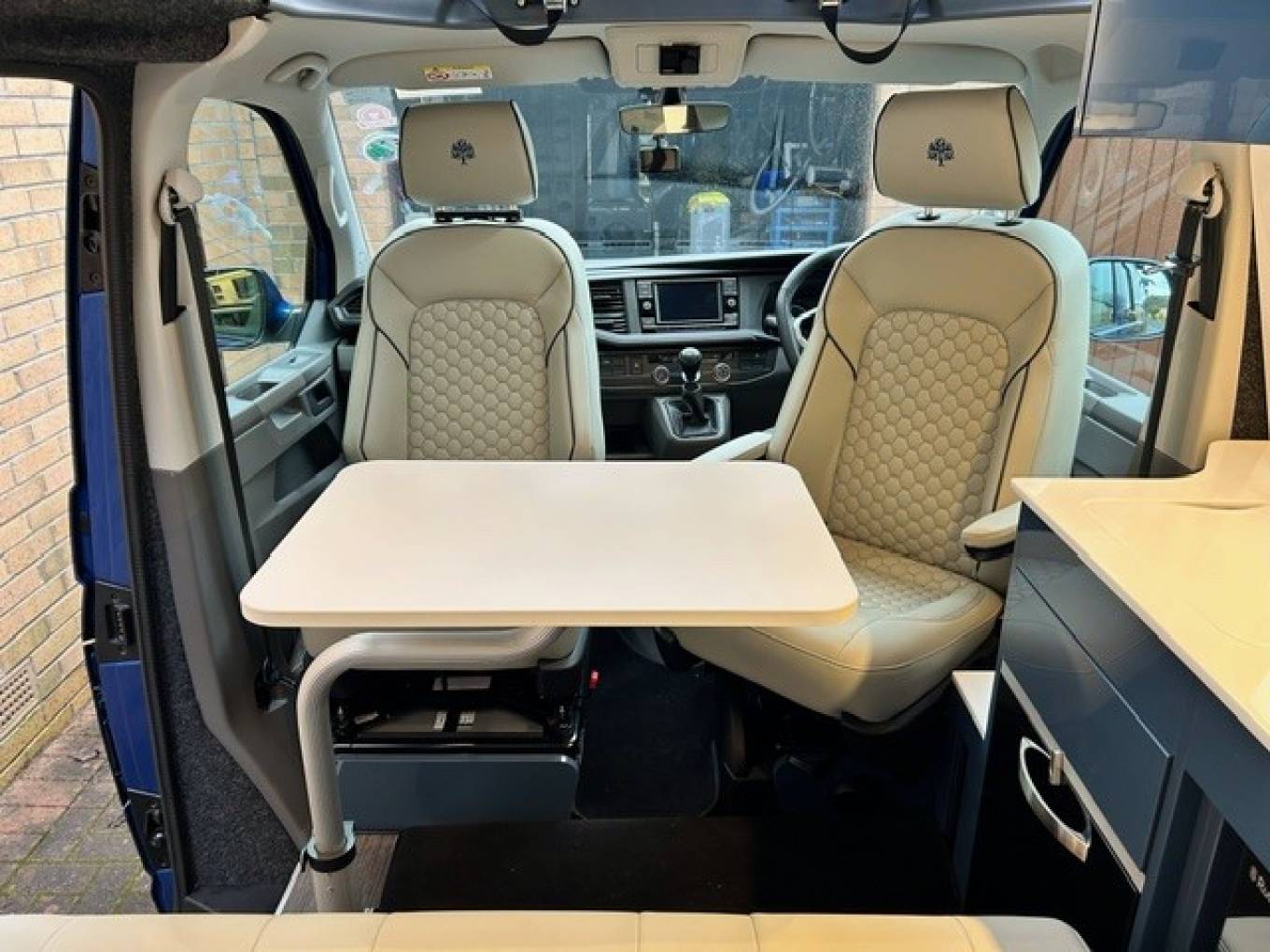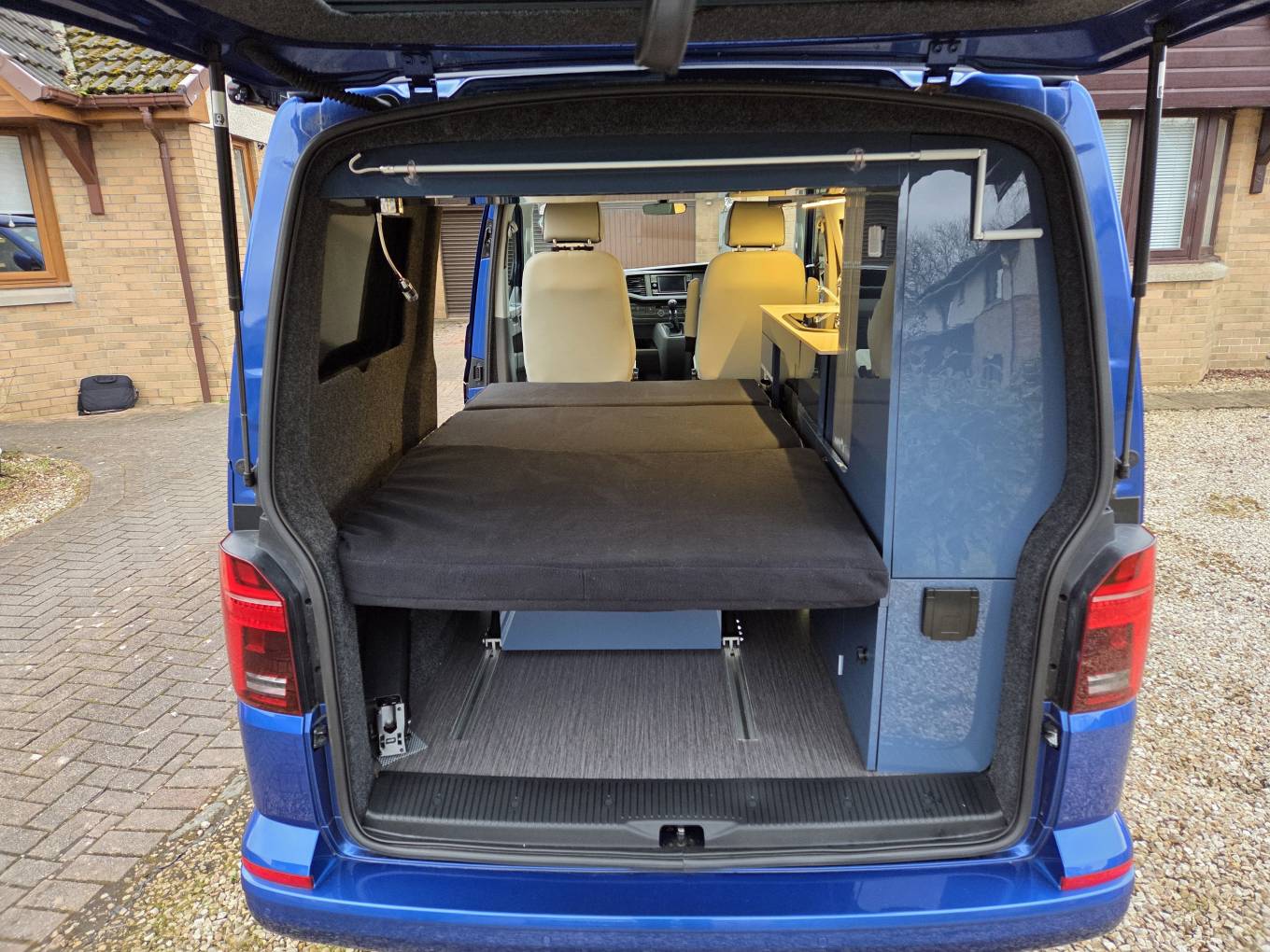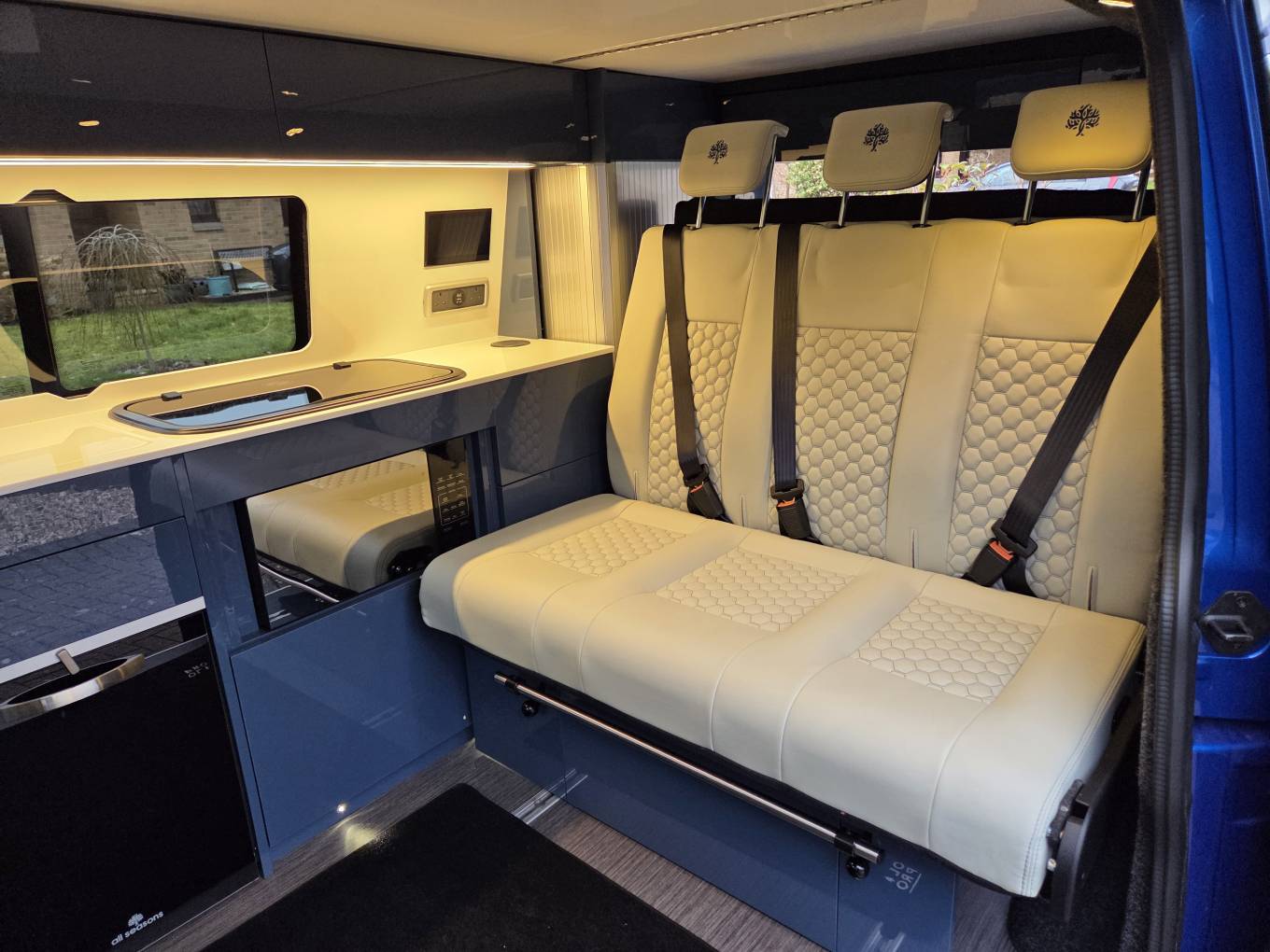 This is the ultimate family multipurpose VW Transporter campervan—perfect for the school run, beach days, and camping trips. Featuring versatile seating with a sliding Reimo bench, which converts to a double bed, a well-equipped kitchen and pop-top bed, plus diesel heating and water heater for comfortable, year-round adventures.
