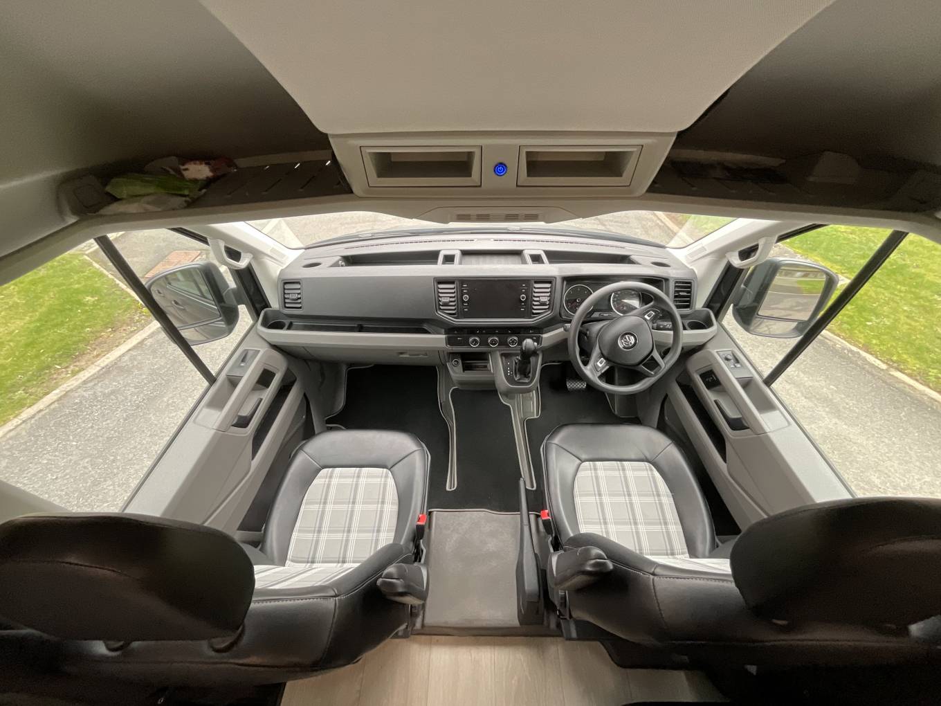 Up front, the driver and passenger swivel seats create a versatile living space, complemented by an additional single seat and table — offering comfortable seating for you and a guest. The cab itself is well specified, as expected from a Trendline model, featuring Satellite Navigation, hands-free calling, and Apple CarPlay.