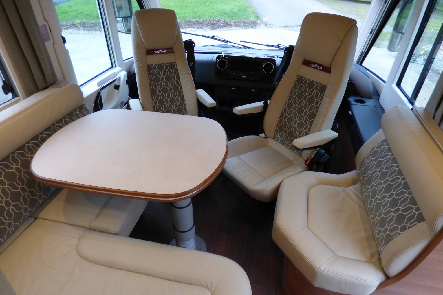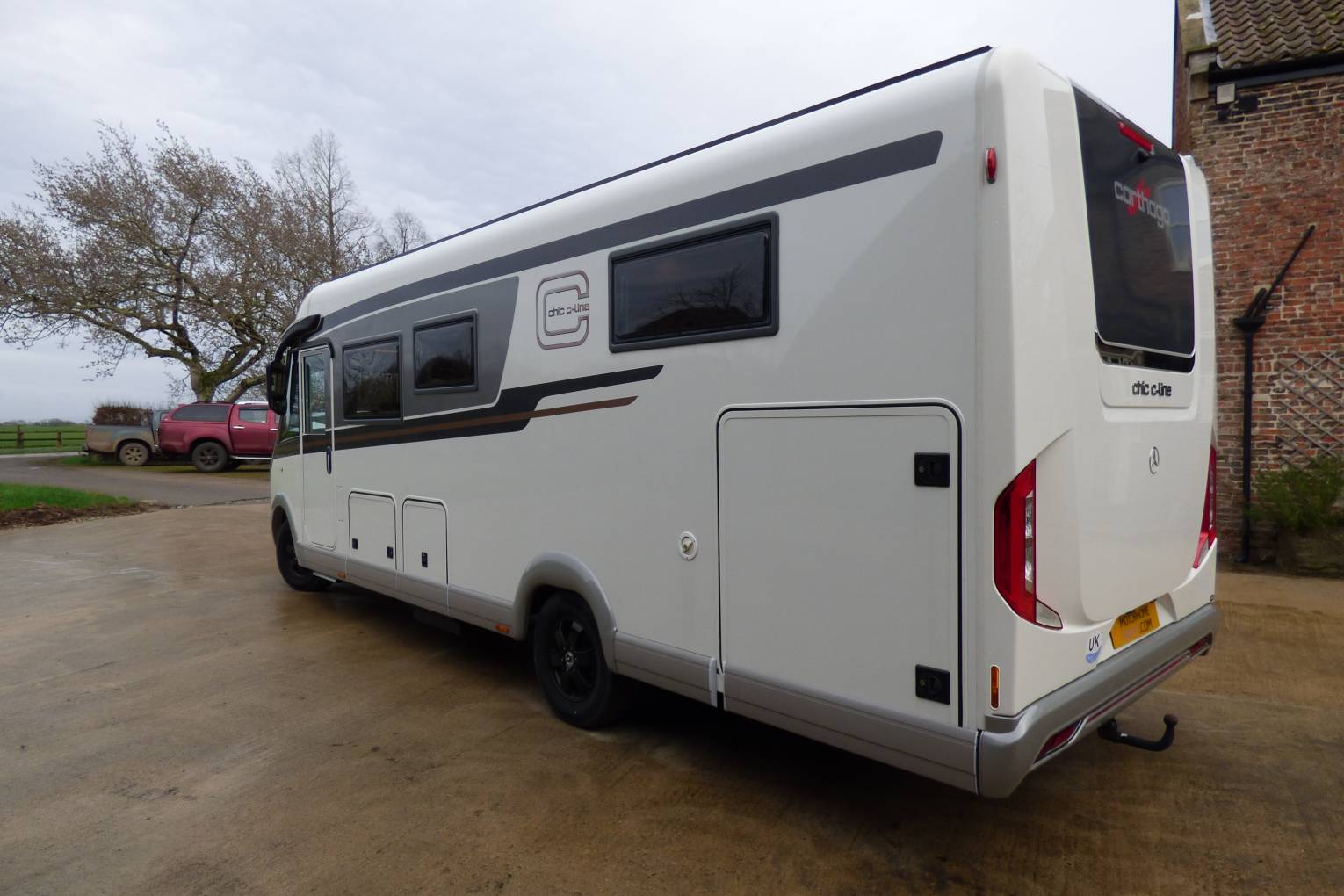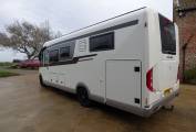 Based near Richmond, North Yorkshire, this 4500kg luxury Carthago Chic C-line I 5.0 QBL motorhome has a rear island bed, drop down bed over the cab and a further single bed in the lounge area with 4 travelling seats plus one extra forward facing seat with belt fitted behind the driver's seat. A "C1" licence is required due to the weight classification.