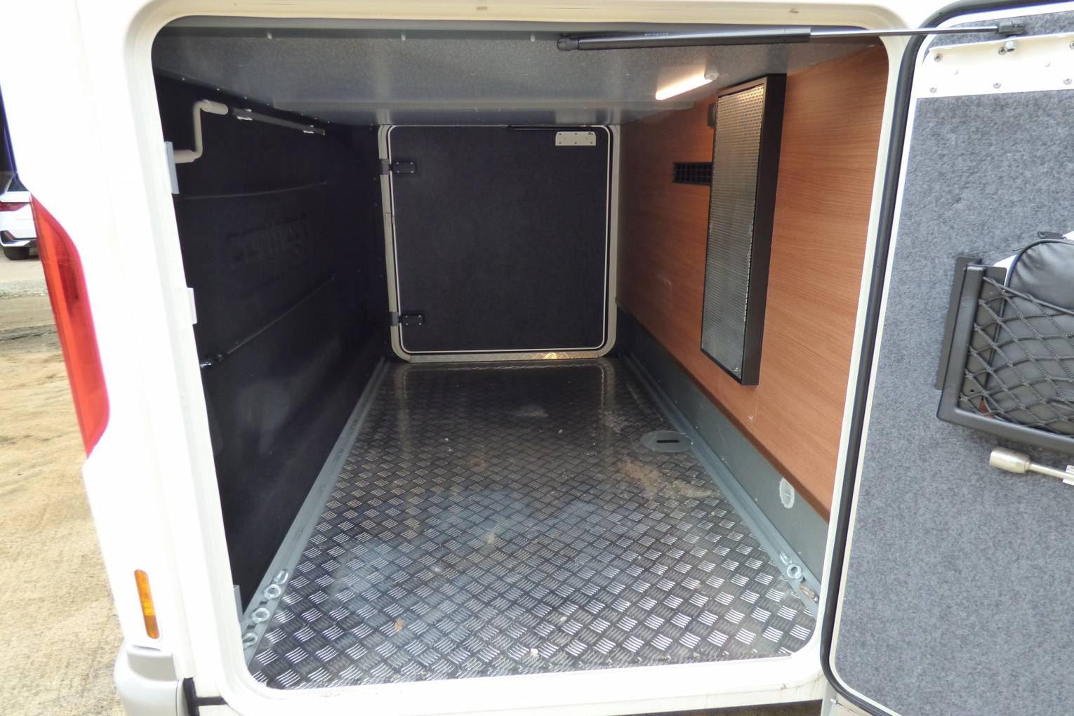 Externally is a 5m Thule wind out canopy with sides (available by separate negotiation) and 2 x gas bottles. The tow bar is removeable and there is a reversing camera with separate screen in the cab. There are manually operated steadies either side at the rear of the vehicle and 2 x solar panels with inverter.